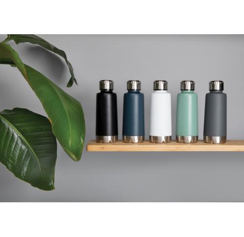 The perfect size BPA-free lightweight stainless steel bottle! This Trend leakproof vacuum bottle is the ultimate solution for your healthy and comfortable hydration on the go. An unique shape with on-trend colours. Keeps your beverages hot for up to 5 hou