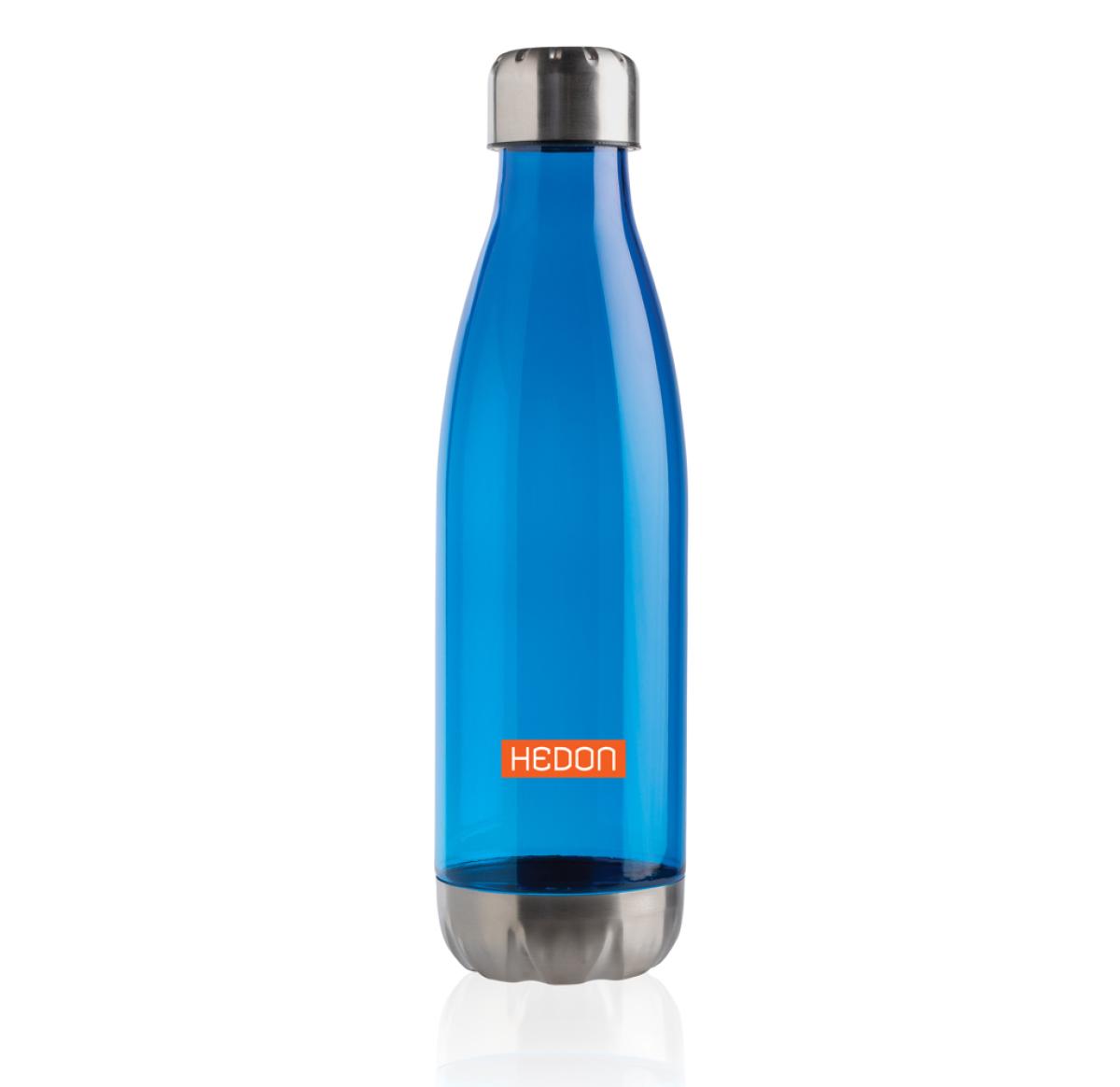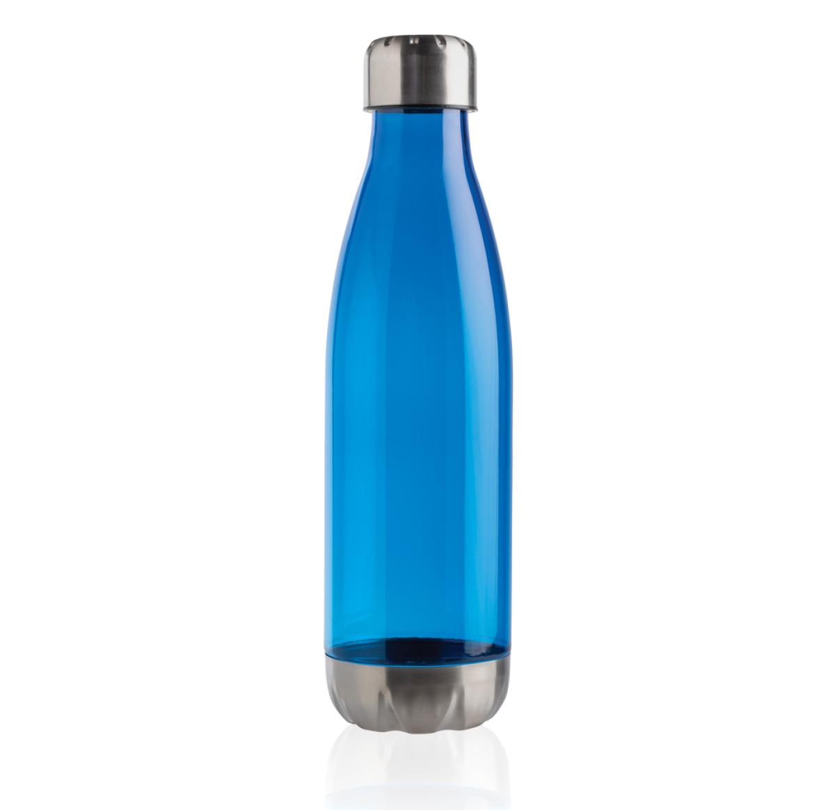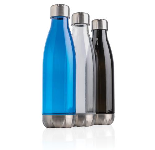 Elevate your daily water intake using this leakproof water bottle with stainless steel lid and bottom and transparent body. With a base that fits in most cup holders, this sleek looking water bottle will keep you hydrated on the go wherever you are. Capac