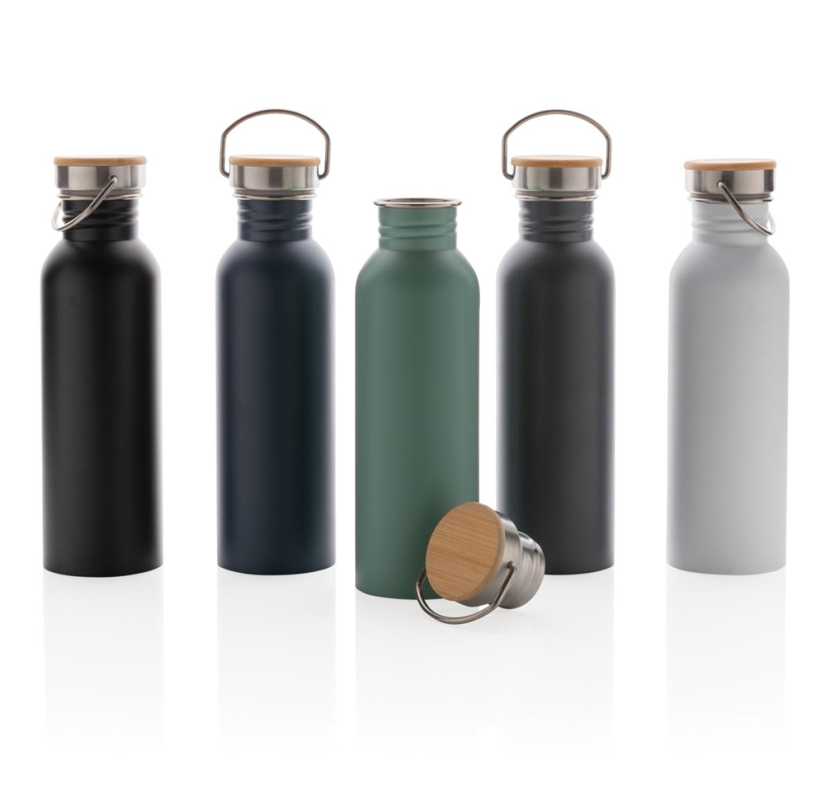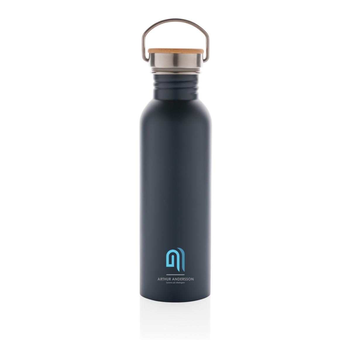 Custom Branded Modern Stainless Steel Water Bottles With Bamboo Lid - Blue