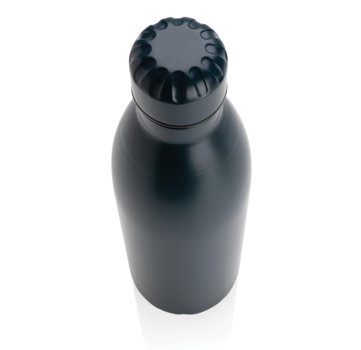 Elevate your daily water intake with this solid colour vacuum insulated stainless steel bottle. The bottle keeps chilled beverages cold for up to 15 hours and hot drinks warm for up to 5 hours. With a base that fits in most cup holders, this sleek looking