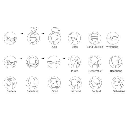 This one size multifunctional scarf can be worn in multiple ways. Use the scarf, for example, as a face cover when going outside and avoid your hand touching your mouth and nose. Also reduce the spread of saliva drops while talking, sneezing or coughing.