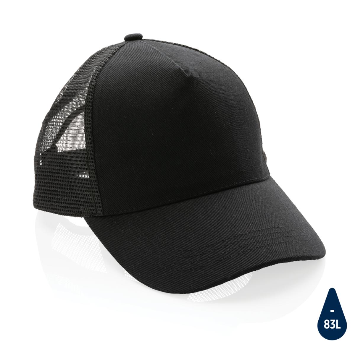 Eco Branded Brushed Rcotton Baseball Trucker Cap 5 Panel 190gr Impact AWARE™ - Black