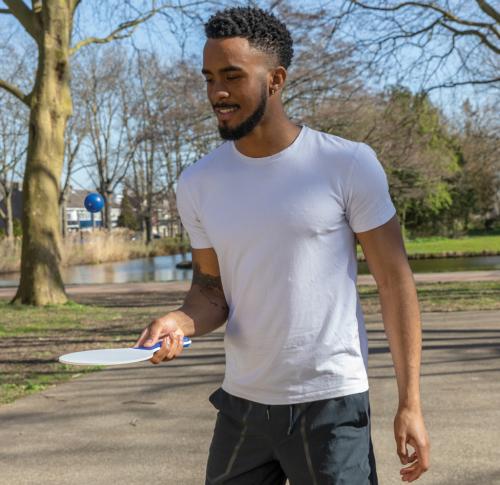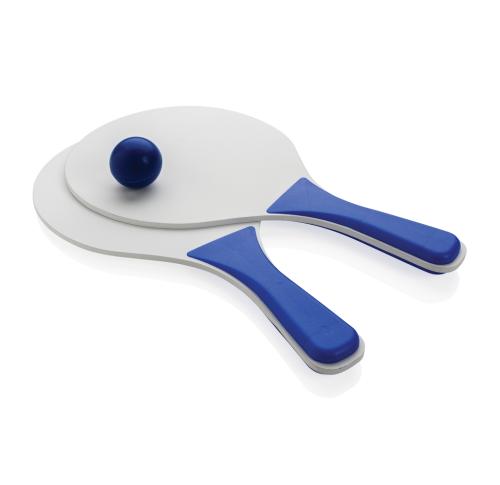 MDF beach ball set with PP handle. Packed in net including 1 ball.