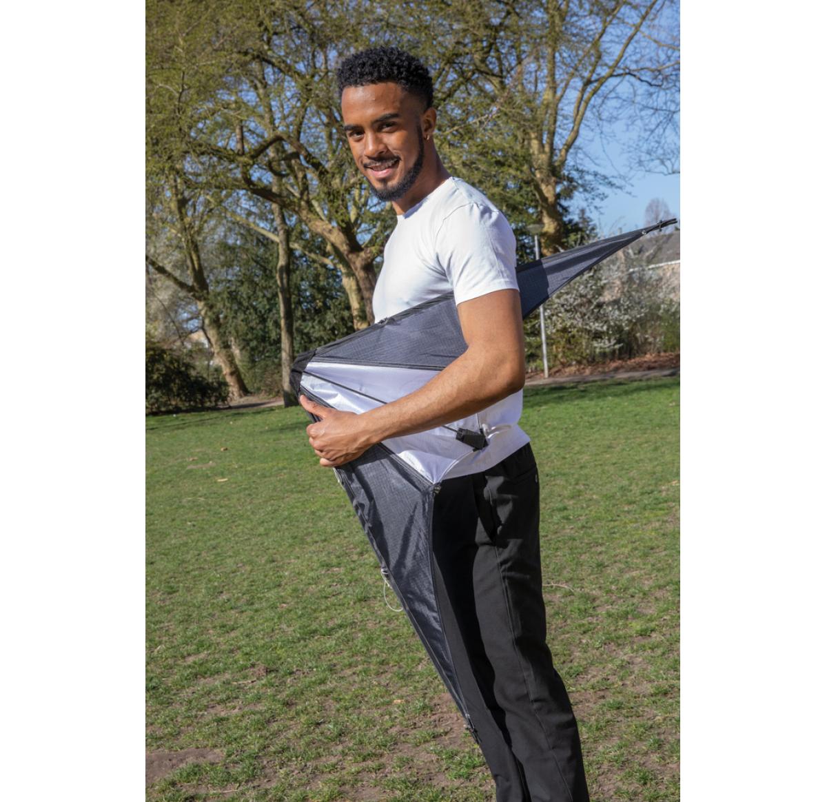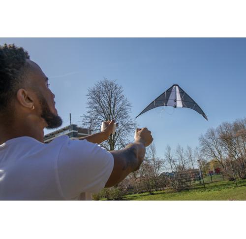 Delta kite packed in pouch to bring it to the beach or your holiday destination. With 30 metre cable and handles to let the kite fly high in the sky. Made from strong ripstop polyester.