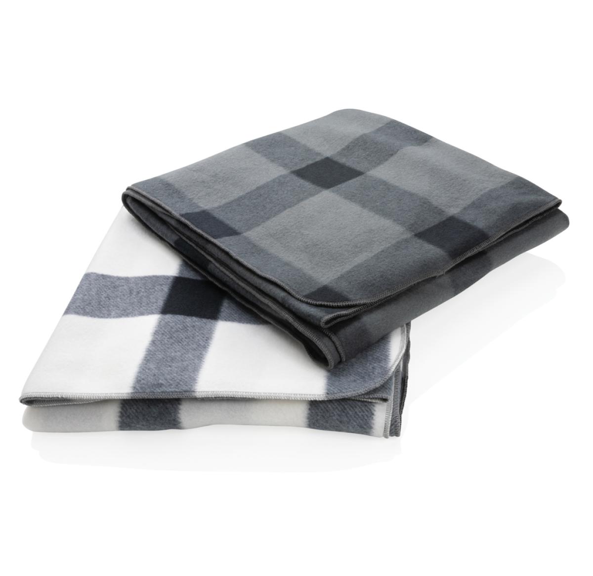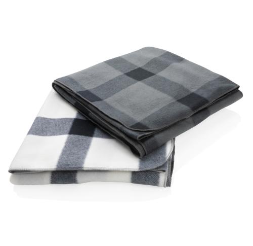Custom Logo Soft Plaid Fleece Blankets - White / Black Check