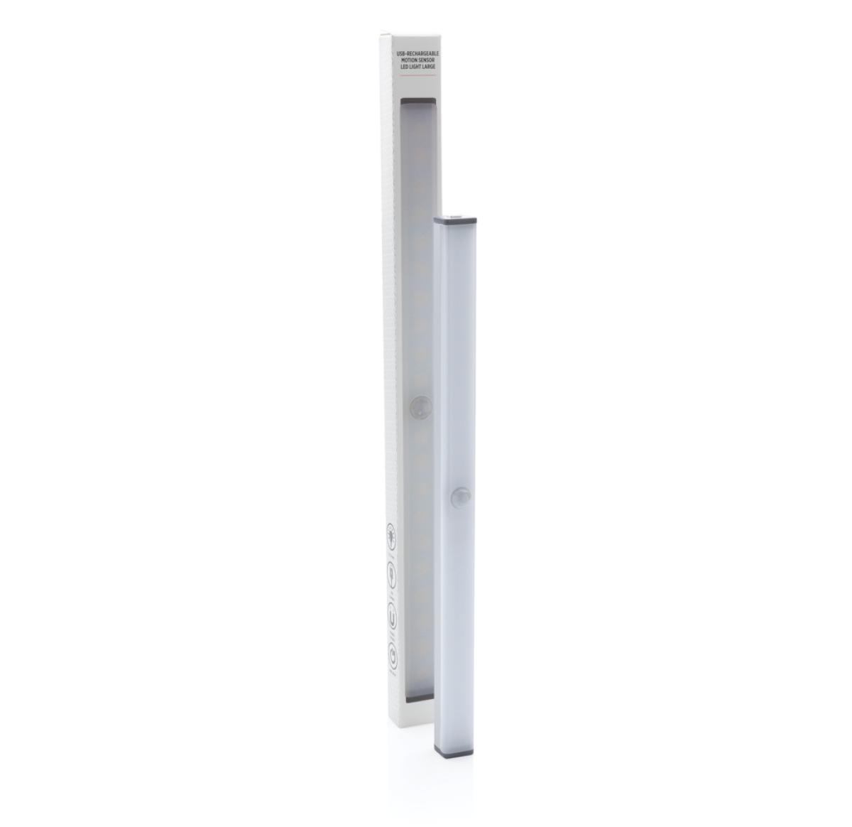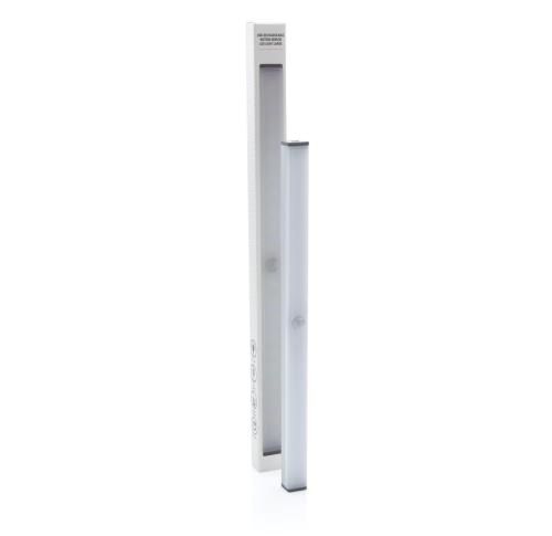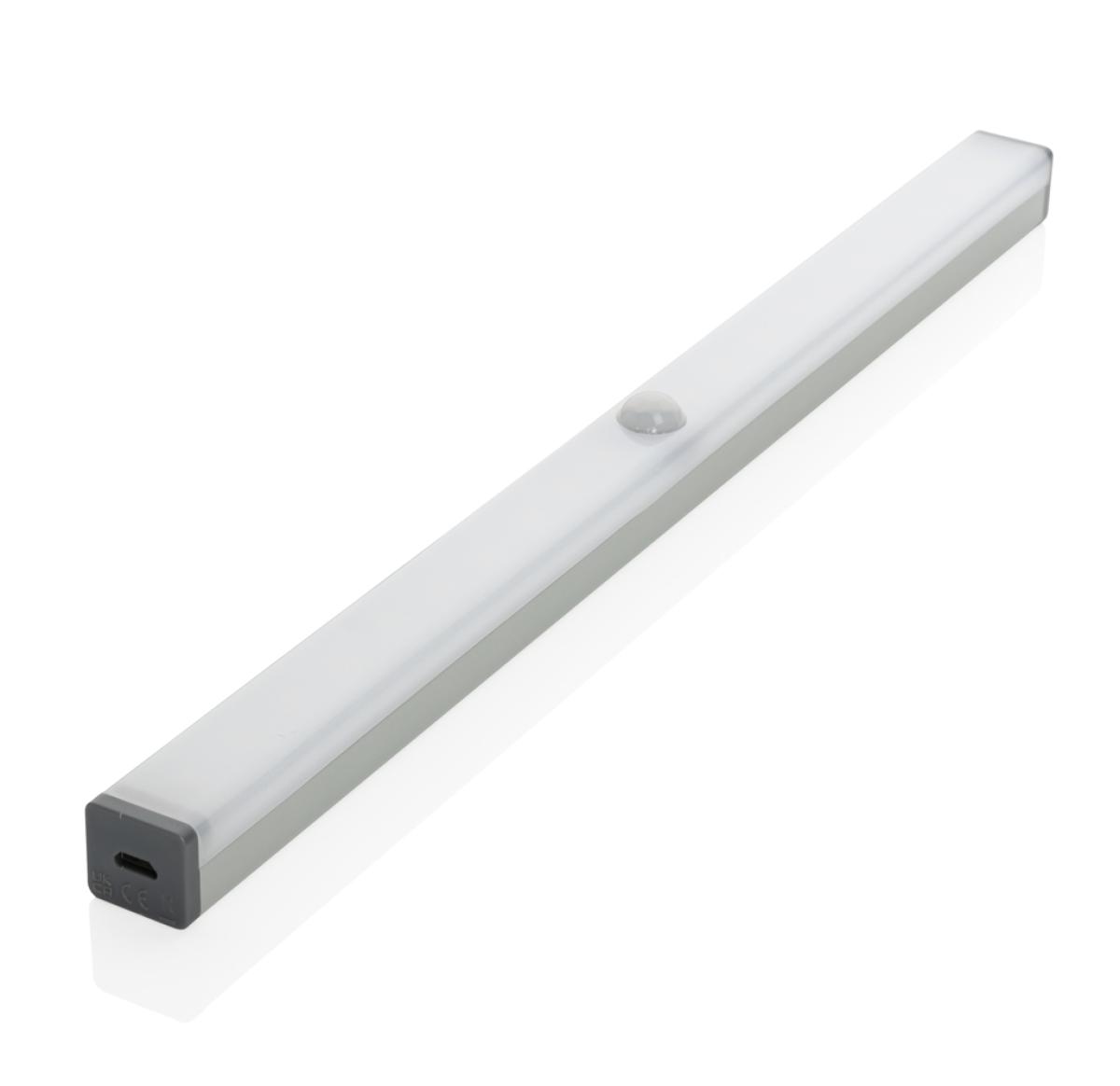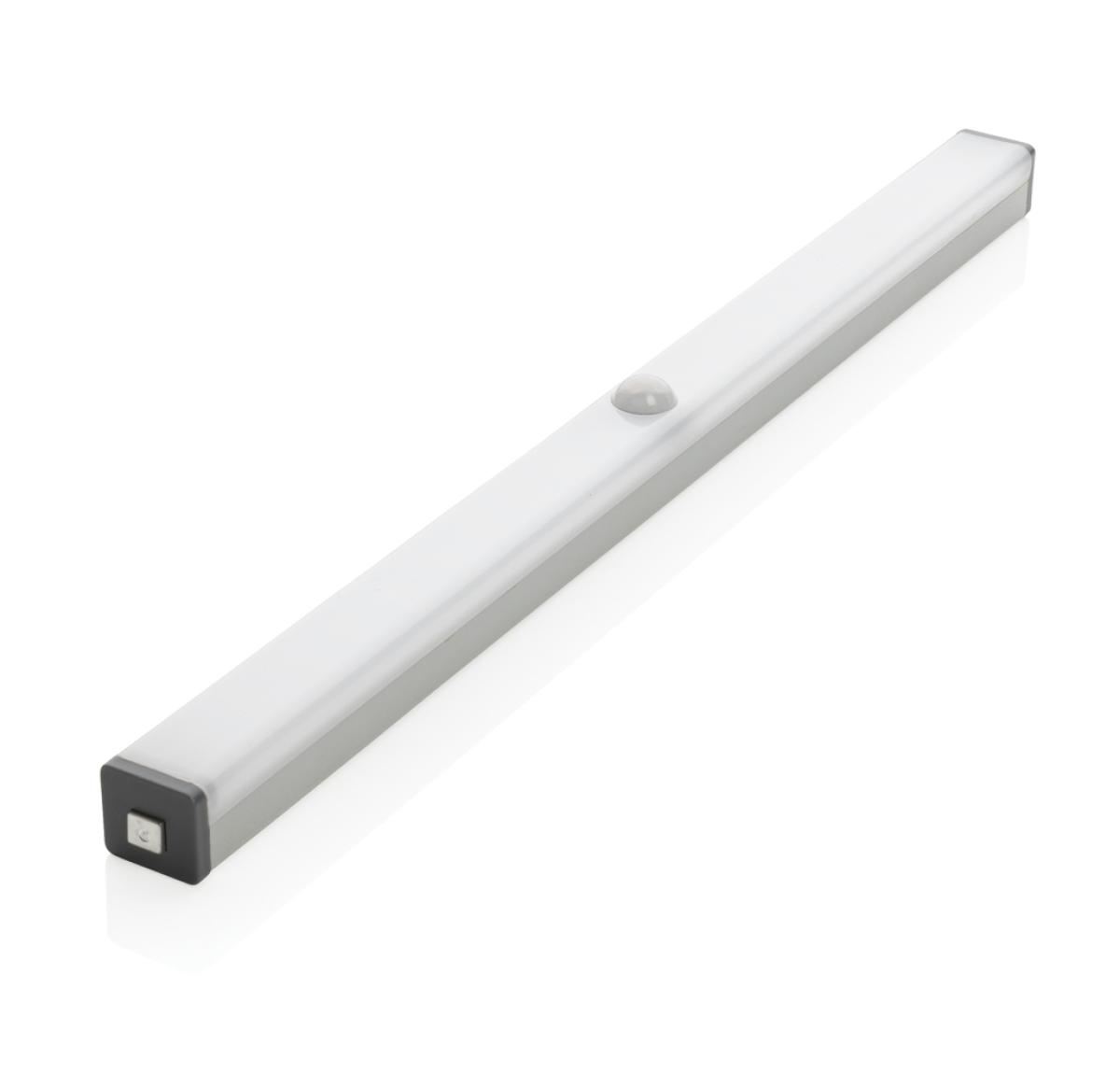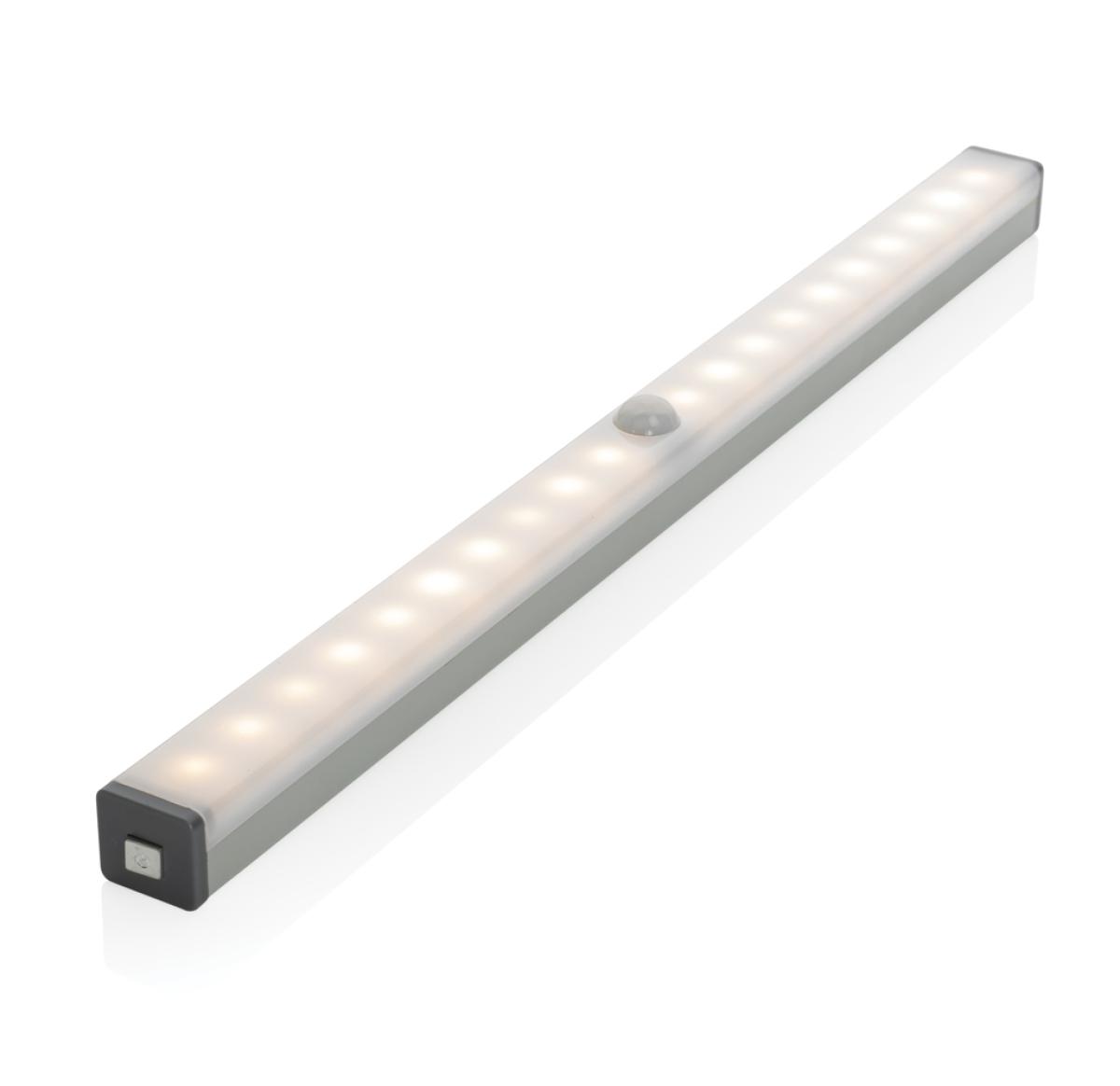 Aluminum LED strip motion sensor with 20 LED. With magnetic back panel to attach it to metal surfaces. Including 2 magnets with stickers to attach to non-magnetic surfaces. Perfect to use in the garage, above your desk, in the hallway or in your closet. T