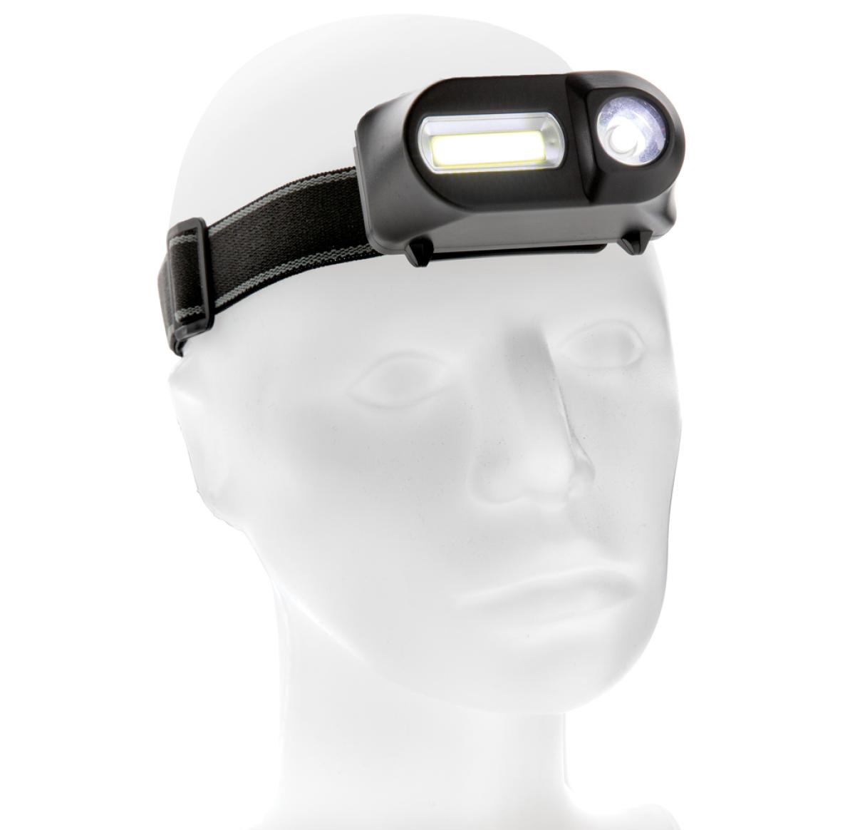 Dual head torch with both COB and LED torch. The 180 lumen COB light is perfect to illuminate areas nearby with a bright light. Switch to the 90 lumen LED light to highlight areas that are more distant (up to 80 metres). Both lights have three modes: brig