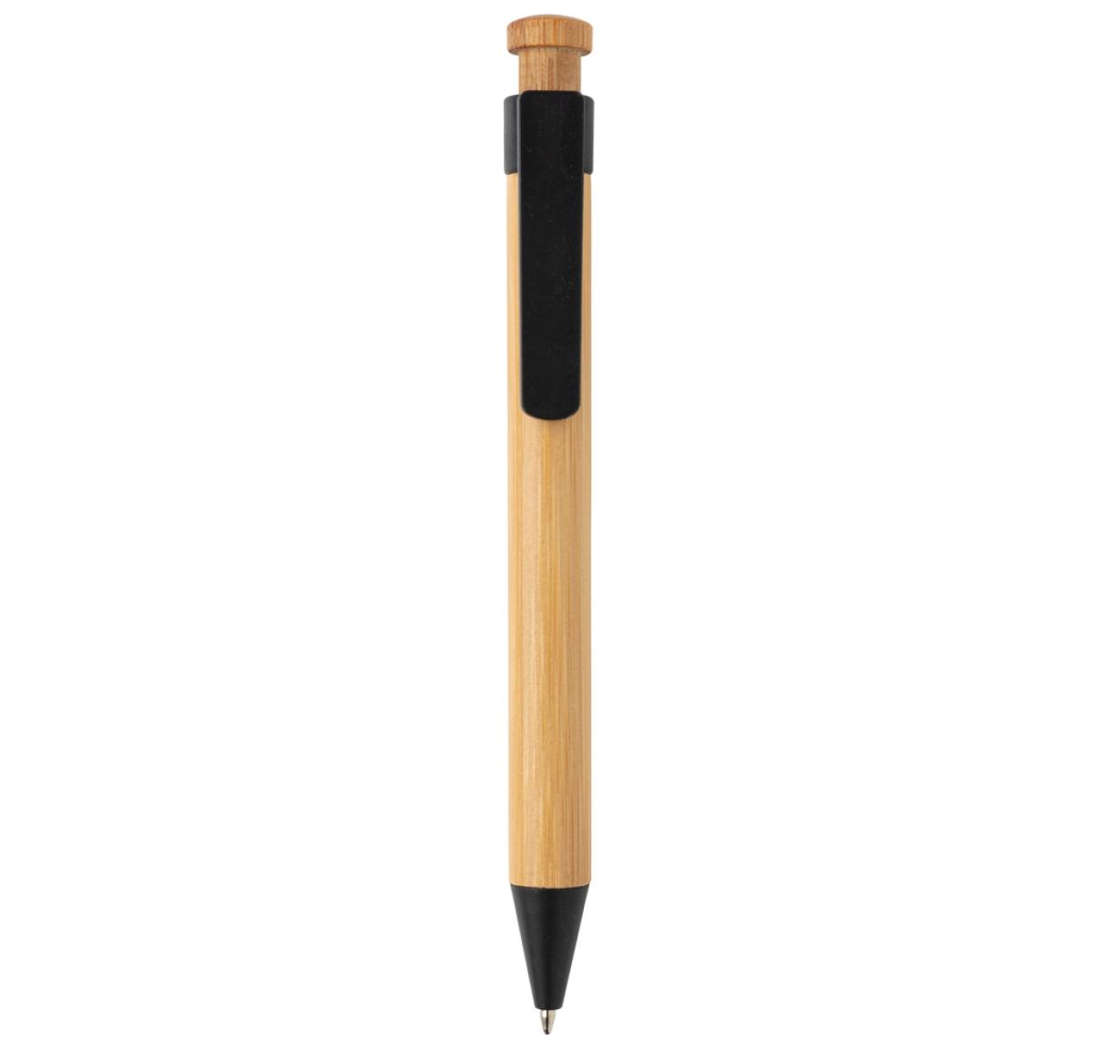 Custom Eco Bamboo Pen With Wheatstraw Clip Black