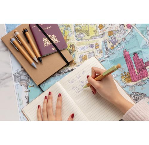 This beautiful looking pen is great for jotting down meeting notes and ideas. Keep it in your bag or notebook to ensure every thought is written down. Made with bamboo and wheatstraw. Wheatstraw composition of the clip is 40% wheatstraw and 60% ABS. With