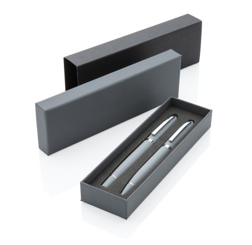 Simple but elegant. Thanks to the matte finish, this deluxe pen set has a luxurious feel and very pleasing to the touch. The set consists of a ball pen and a roller pen. Both pens contain German Dokumental® ink for ultra smooth writing. Writing length for
