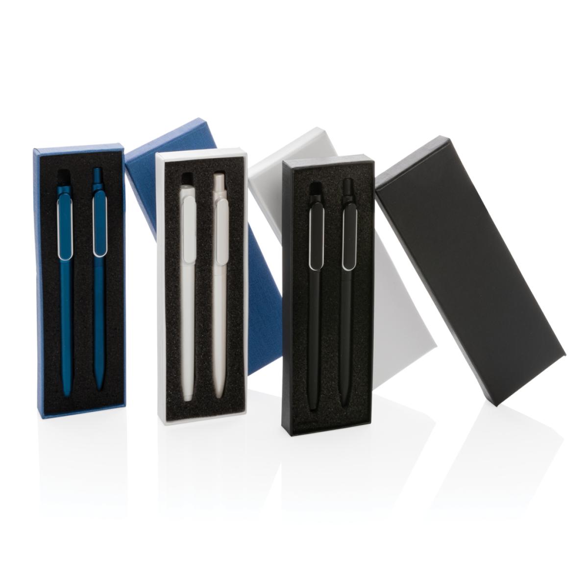 This X6 pen set features an unique metallic finish with stunning metal clip design. This set features the X6 pen next to his new brother the X6 cap pen. The X6 pen holds ca. 1200m writing length with German Dokumental® blue ink refill with TC-ball for ult