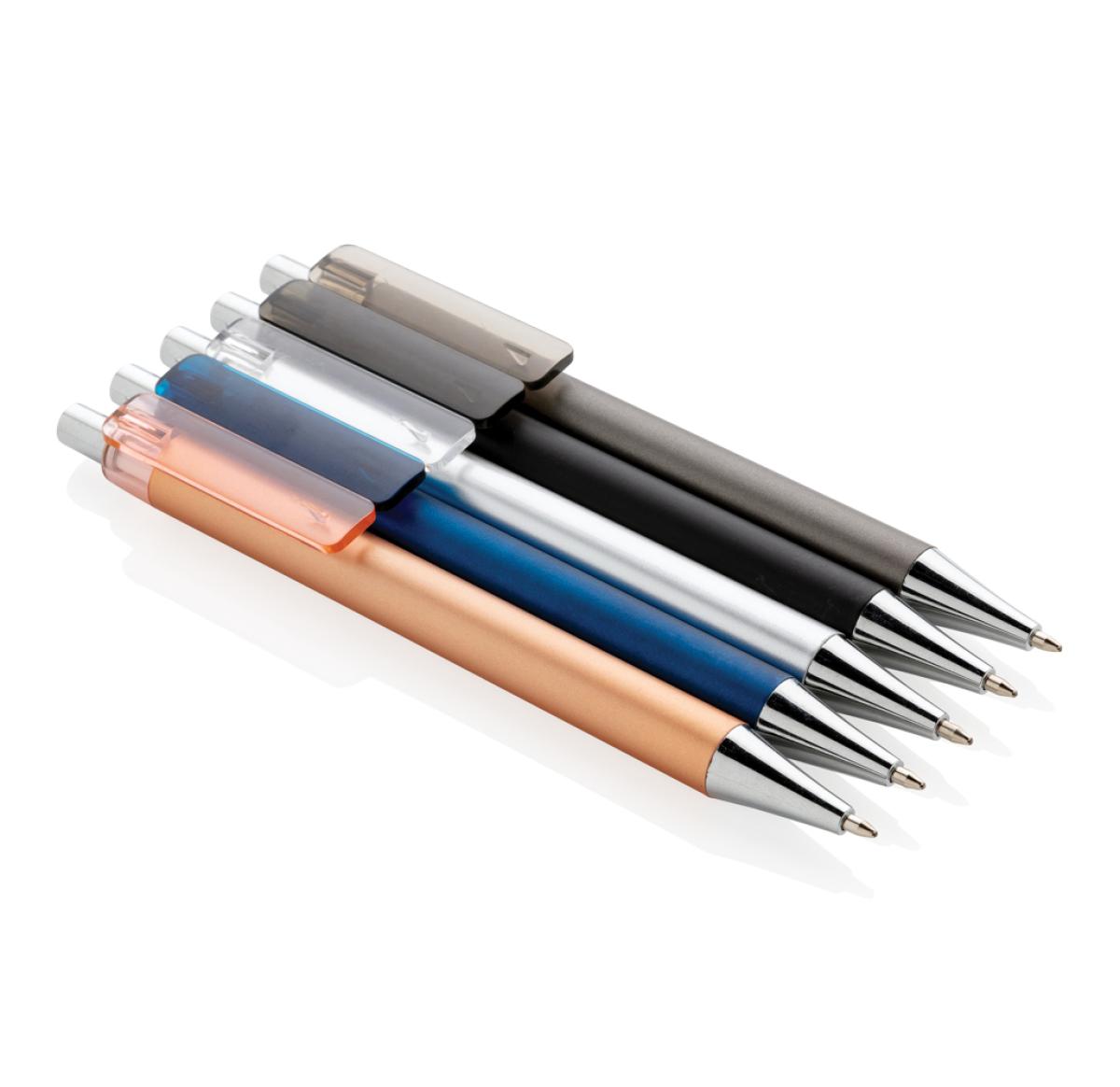 A new sophisticated member of the X pen family featuring a new look with a chrome tip and plunger accent. With luxury metallic finish. Perfect for communicating your brand message. Including ca. 1200m writing length German Dokumental® blue ink refill with