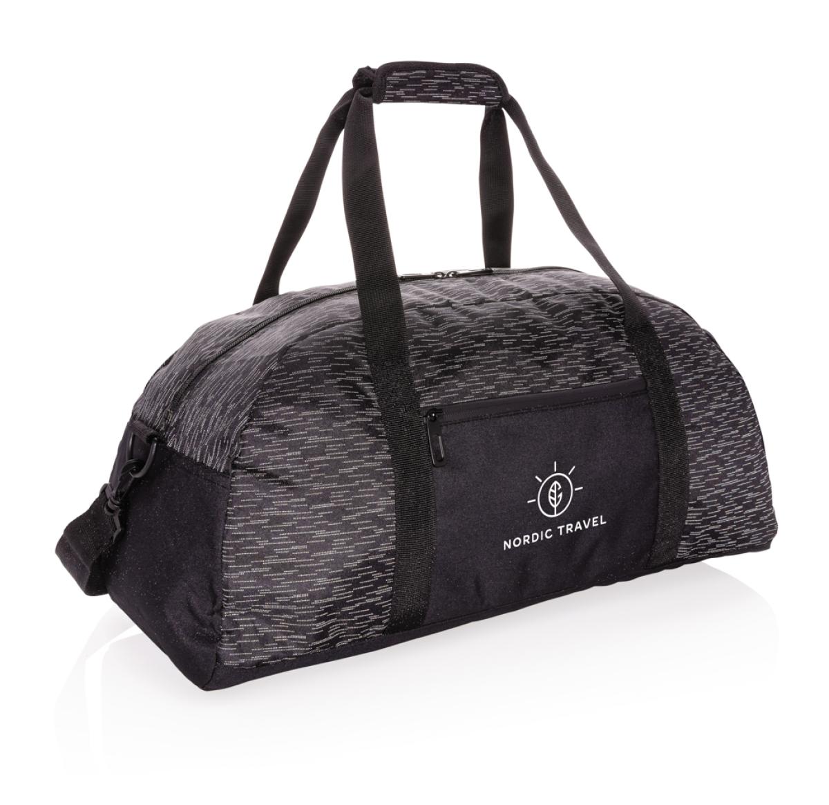 Increase your visibility in style with this weekend duffel made with 100% recycled polyester and AWARE™ tracer. With AWARE™, the use of genuine recycled fabric materials and water reduction impact claims are guaranteed, by using the AWARE disruptive physi