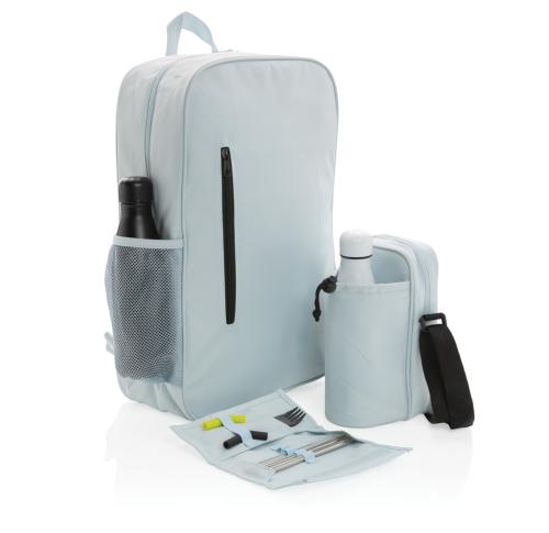 Keep your hands free and your stuff cold. The Tierra backpack is designed with maximum portability in mind. Great for hiking and picnics. The backpack holds 12 cans or 8 cans and 2 wine bottles. A zippered front pockets holds your keys and other accessori