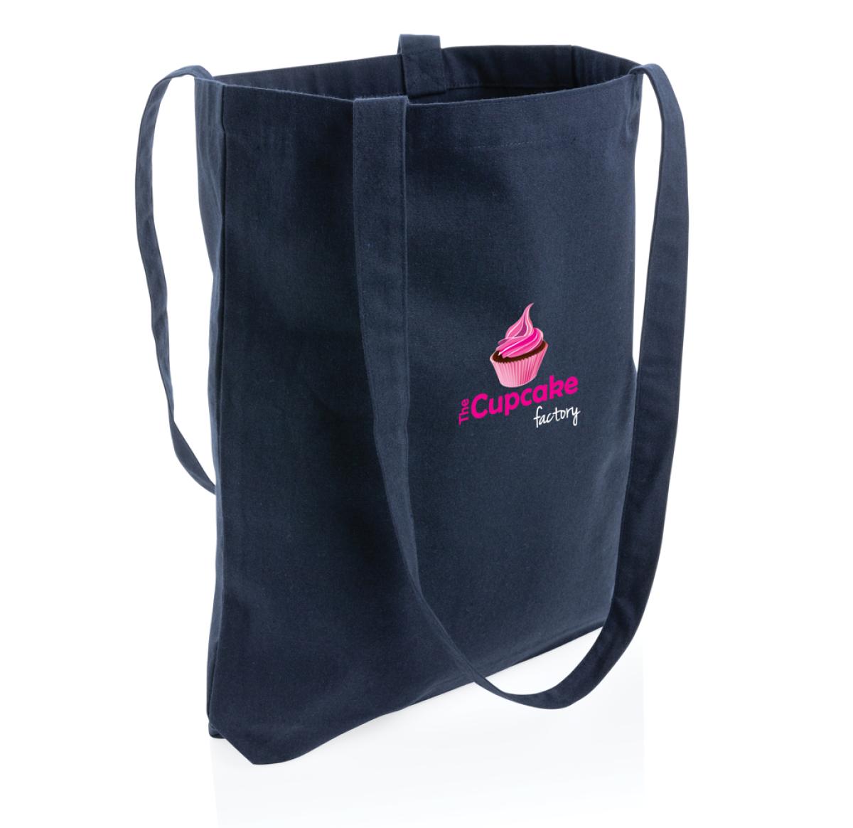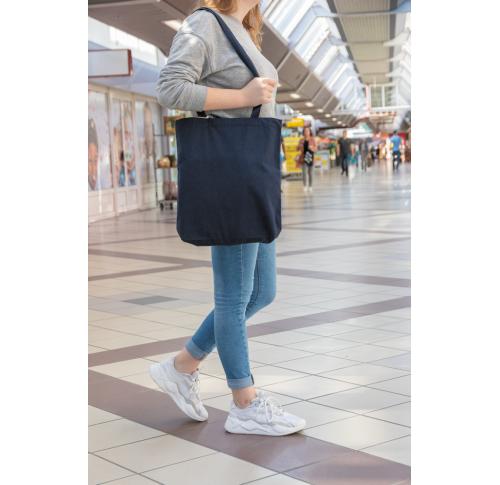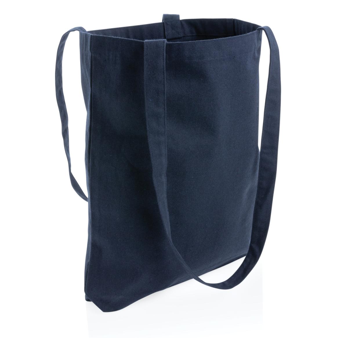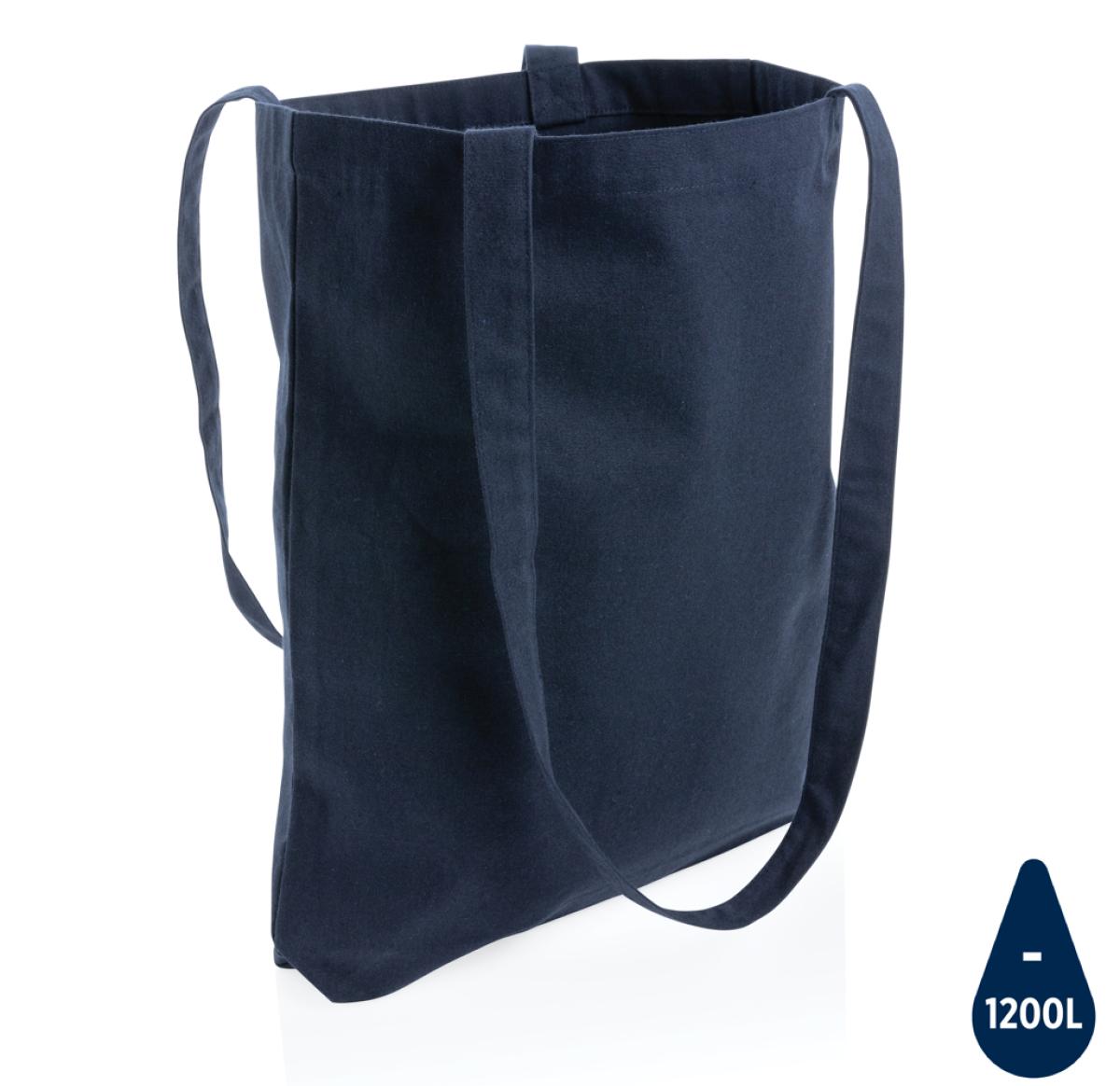 Promotional Printed Recycled Cotton Tote Bags W/bottom 145g Impact AWARE™ Navy Blue L/Handles