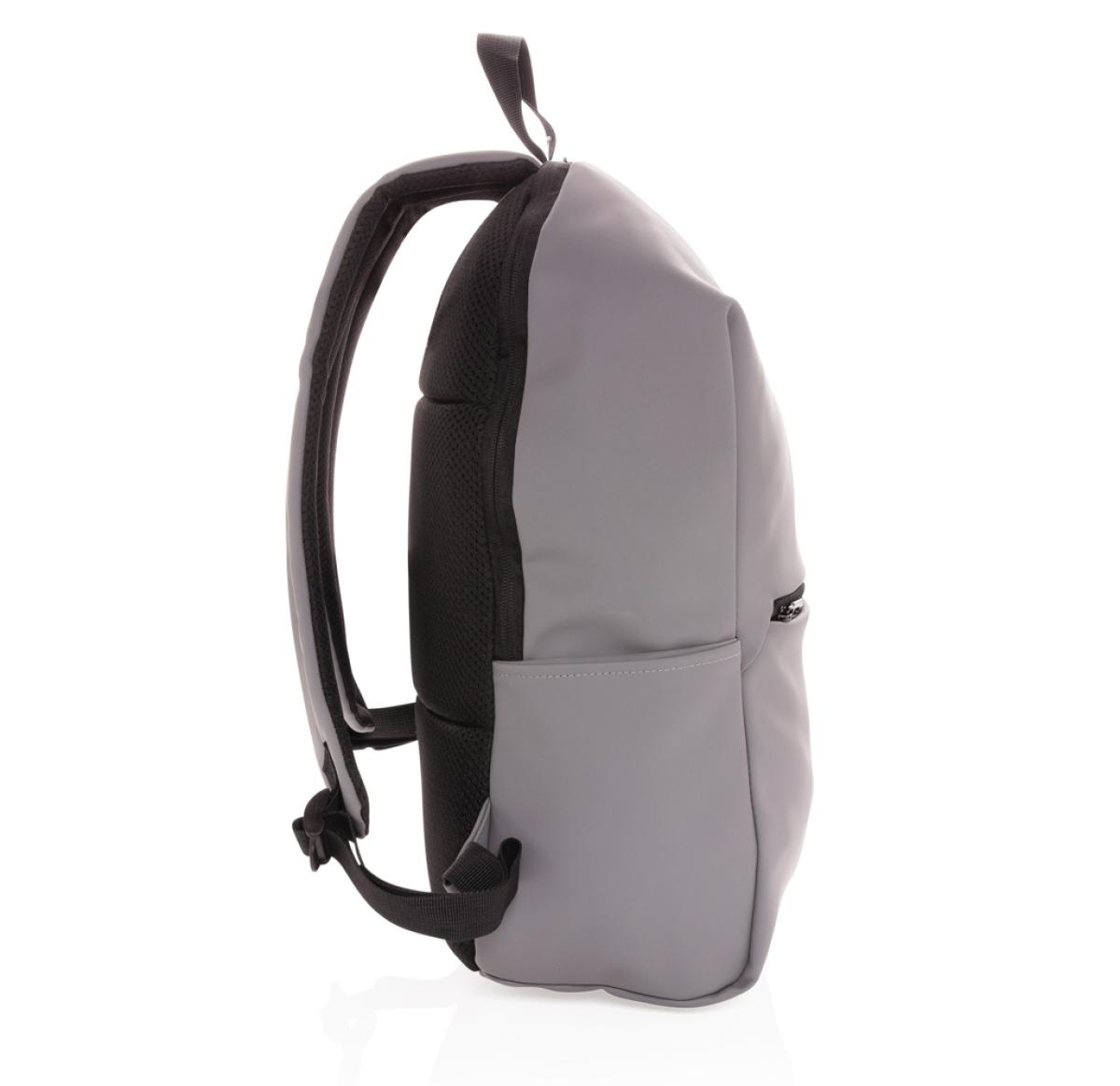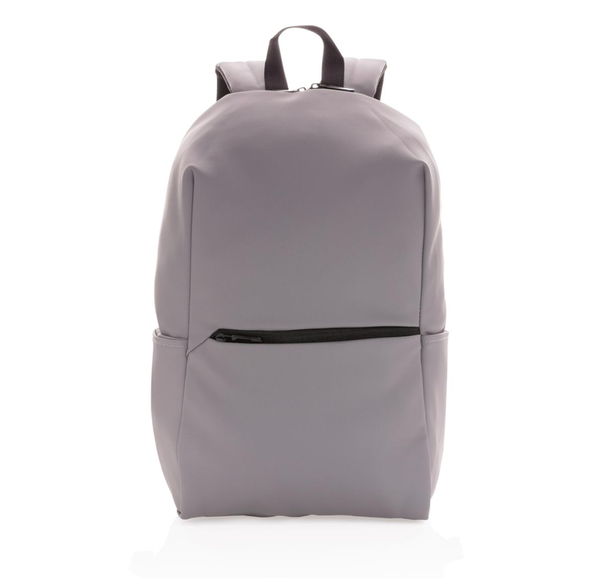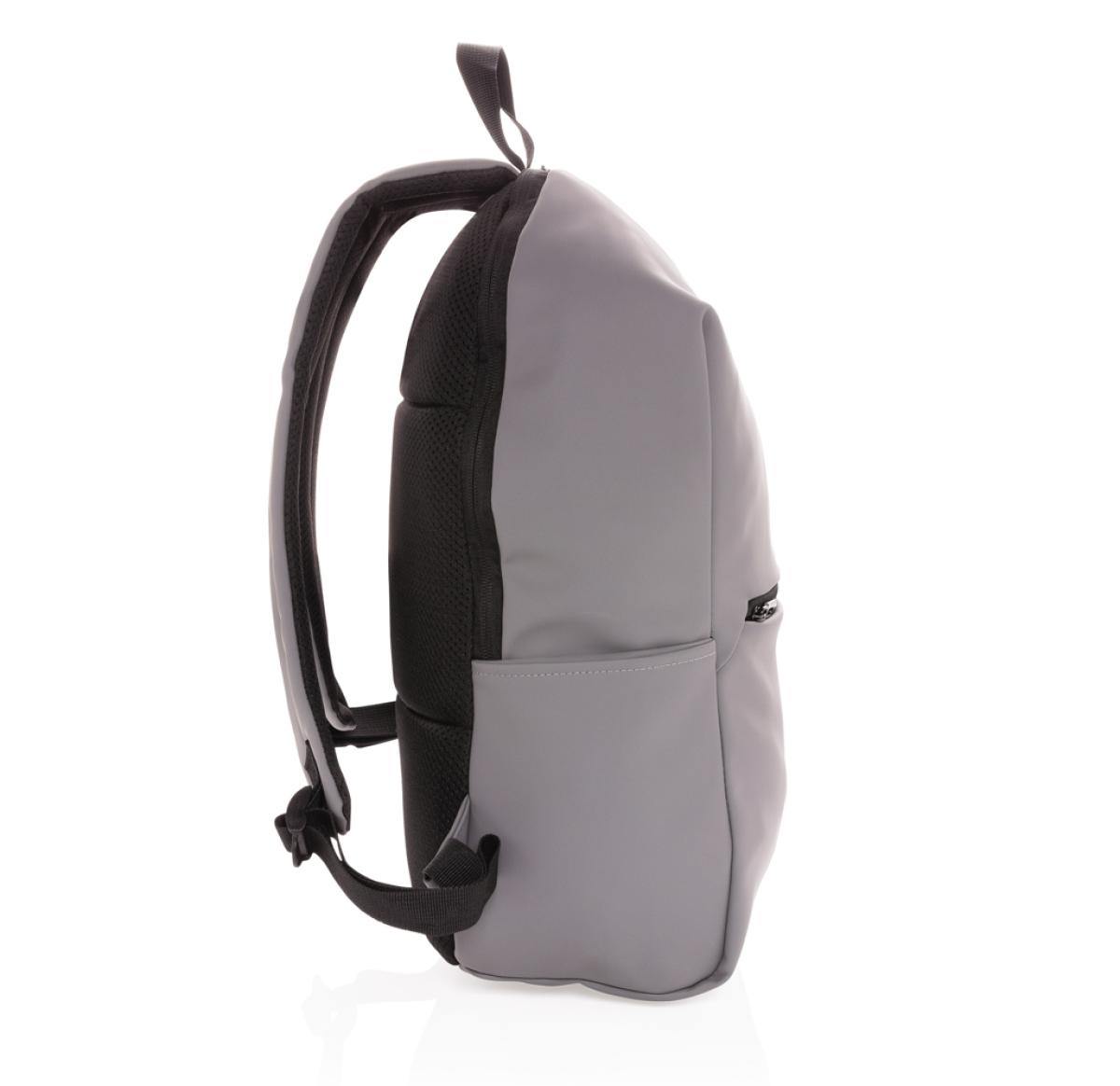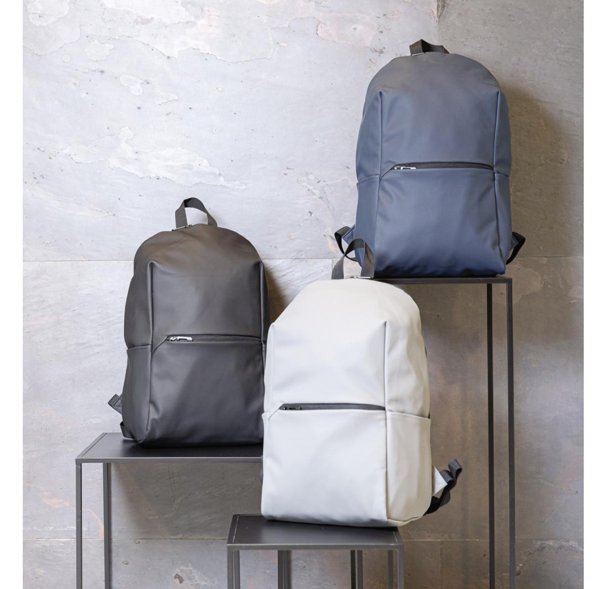 This minimalist, modern backpack made of smooth PU is fully lined and features an inner 15.6 inch laptop compartment, a spacious main compartment and 2 inner pockets and 2 pen loops. Mesh padded back and adjustable straps. Exterior 100% PU. Interior 100%