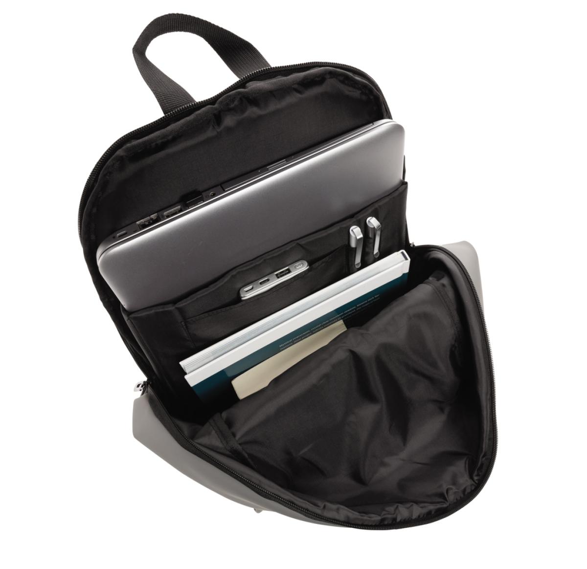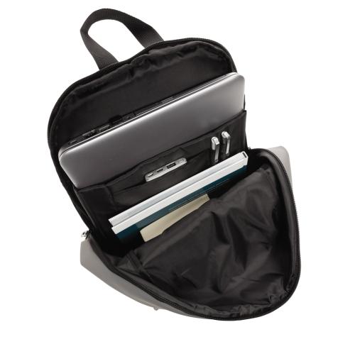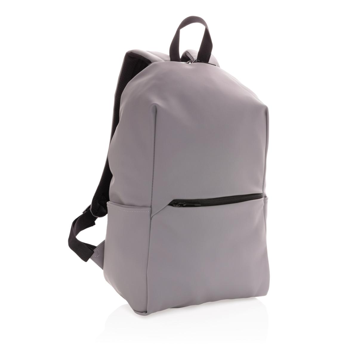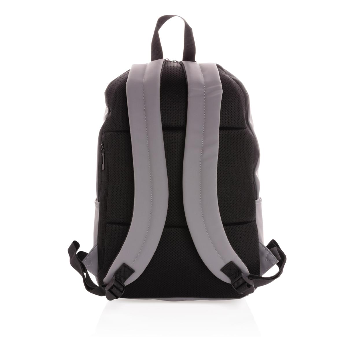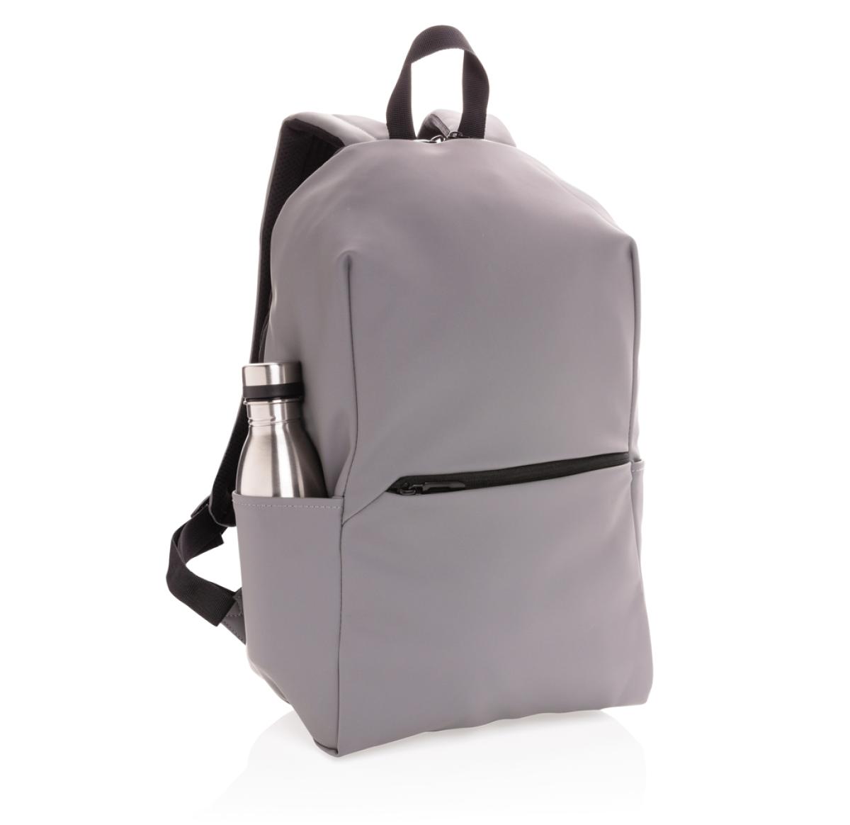 This minimalist, modern backpack made of smooth PU is fully lined and features an inner 15.6 inch laptop compartment, a spacious main compartment and 2 inner pockets and 2 pen loops. Mesh padded back and adjustable straps. Exterior 100% PU. Interior 100%