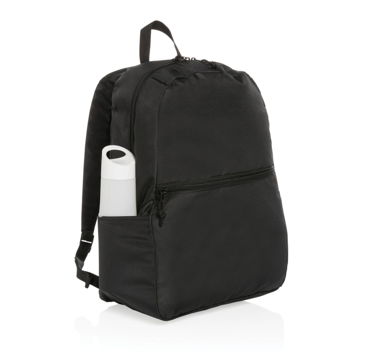 No greenwashing, but telling a true story about sustainability! This Impact 300D RPET backpack is made with AWARE™ tracer. With AWARE™, the use of genuine recycled fabric materials and water reduction impact claims are guaranteed, by using the AWARE disru