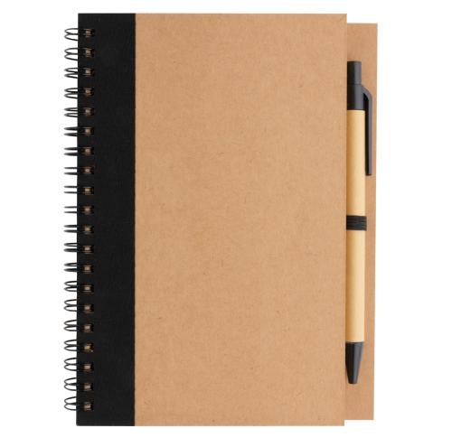 Kraft Spiral Wire Bound Notebook And Pen Set - Black