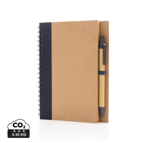 Kraft Spiral Wirebound Notebook And Pen Set - Blue