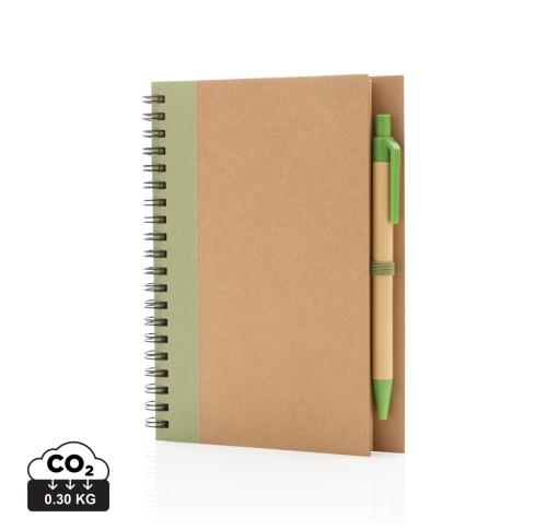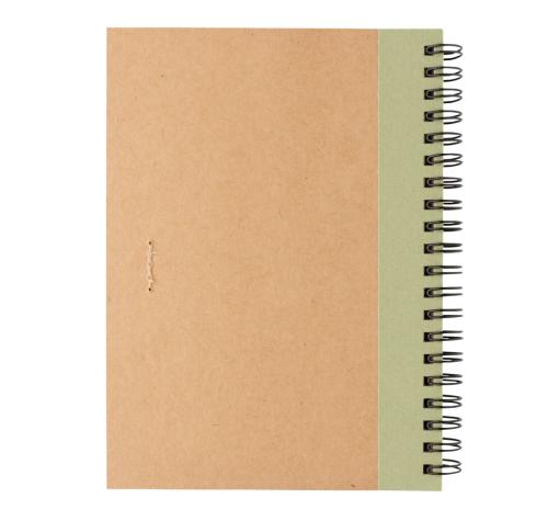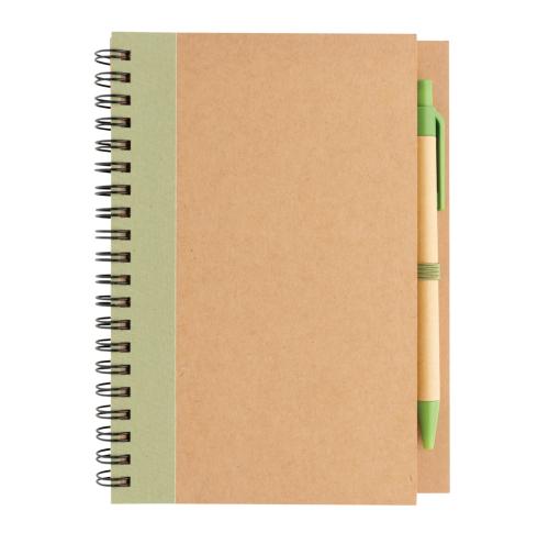 Keep track of your thoughts, notes, plans, to-do's and more with this kraft spiral notebook with pen. The notebook features lined 70 gr cream coloured recycled paper with 70 sheets / 140 pages. The notebook has a colour matching kraft barrel pen. The writ