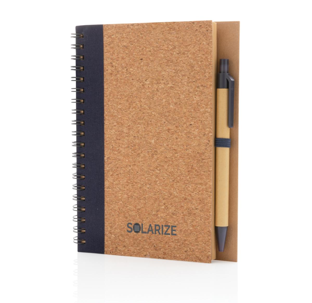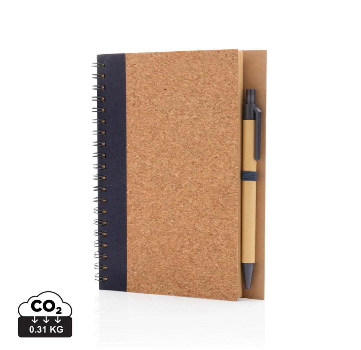Custom Cork Spiral Notebook And Pen Set - Blue