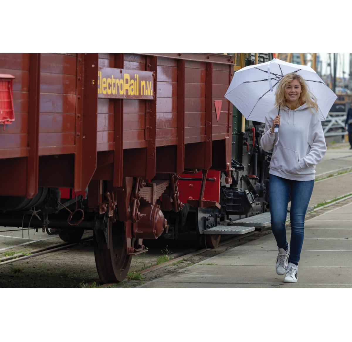 No greenwashing, but telling a true story about sustainability! This Impact umbrella is made with 190T RPET pongee with AWARE™ tracer. With AWARE™, the use of genuine recycled fabric materials and water reduction impact claims are guaranteed, by using the
