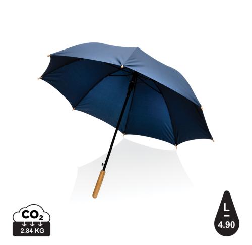Promotional Printed Recycled Umbrella Auto Opening Bamboo Impact AWARE™ 23" Navy Blue