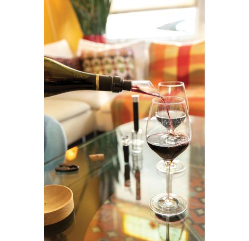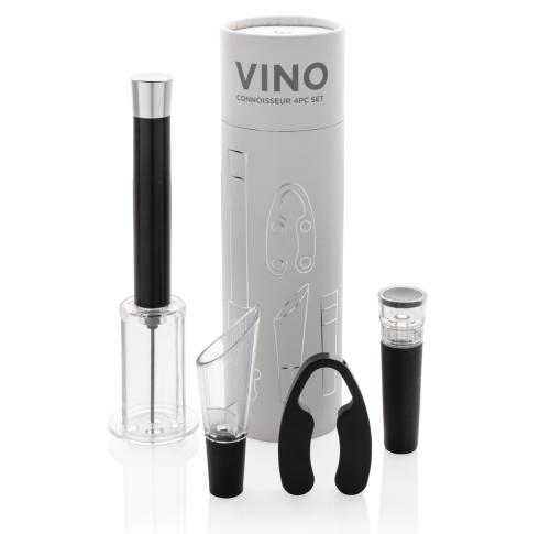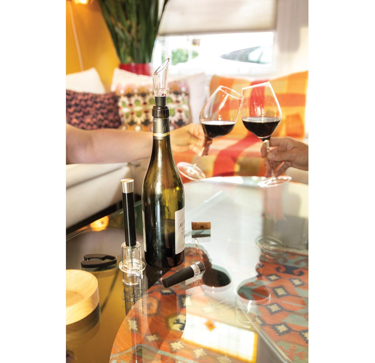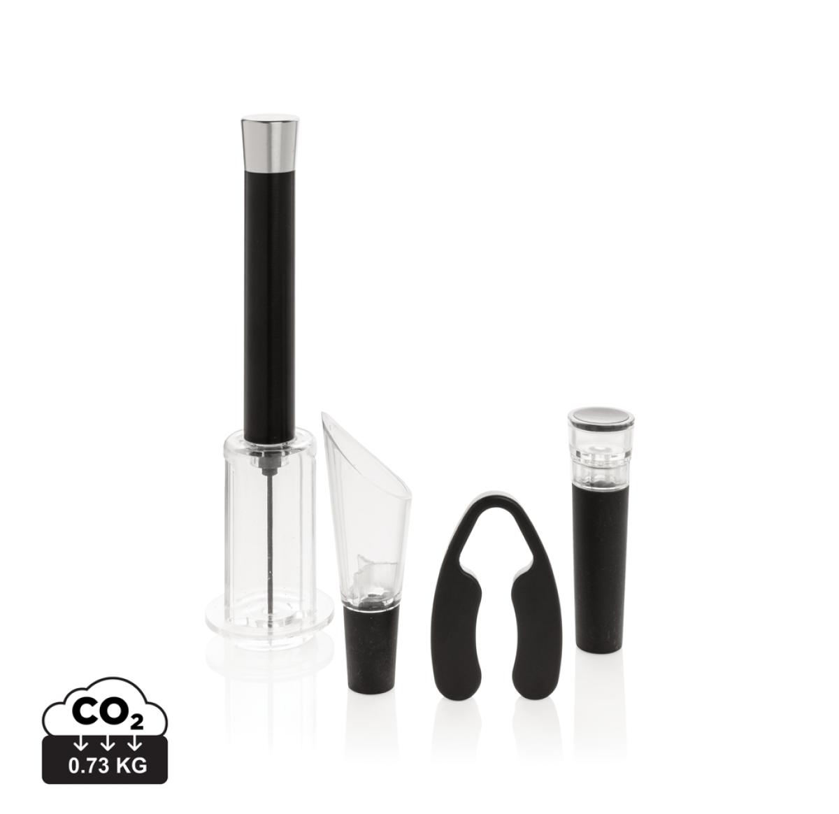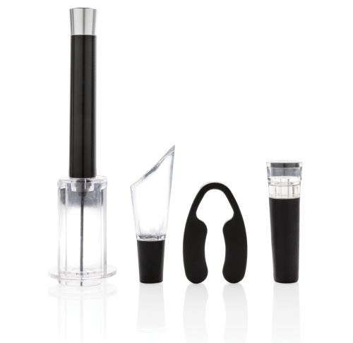Have everything you need to open, serve and store your favourite wines with this 4 pcs wine set. The set consists of an air pump wine opener, foil cutter, wine stopper with vacuum pump & wine pourer with aerator. Packed in a luxury gift tube.