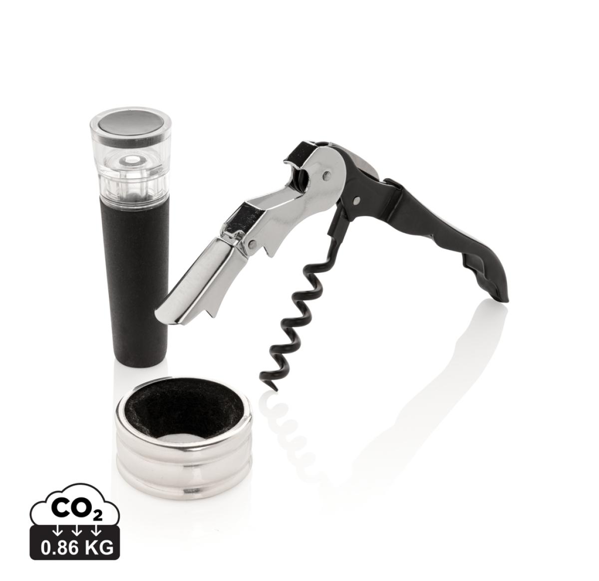 Have everything you need to open and serve your favourite wines with this 3 pcs wine set. The set consists of a waiter's corkscrew, foil cutter and drip ring. Packed in a luxury gift box.