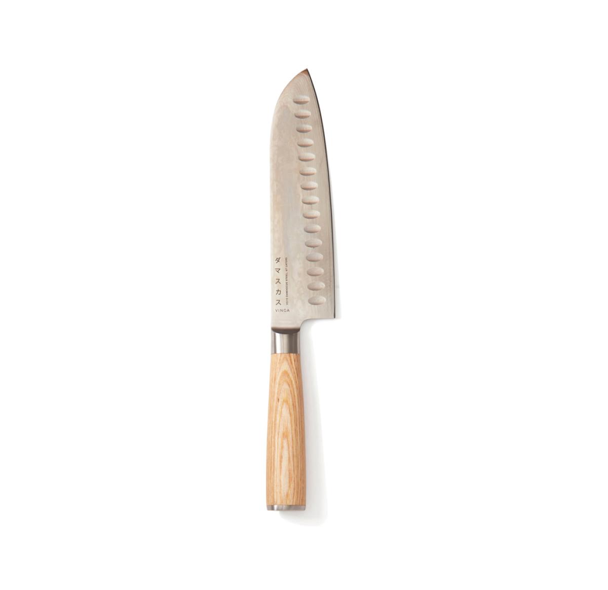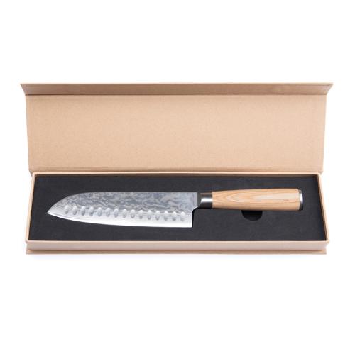 This Santoku knife is ideal for cutting meat and larger vegetables or chopping herbs. The sturdy pakkawood handle is ergonomically designed, making the knife easy and comfortable to use. This means you can work with the knife for a long time without tiring your hand. The blade has an incredibly hard core of VG10 steel which is cast in 67 layers of steel. The result is a durable blade with an incredible sharpness and outstanding cutting performance.