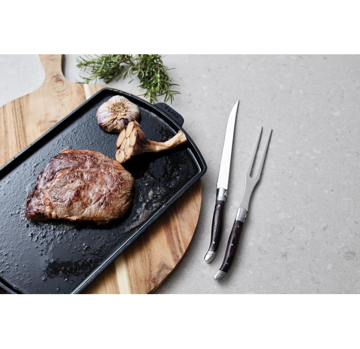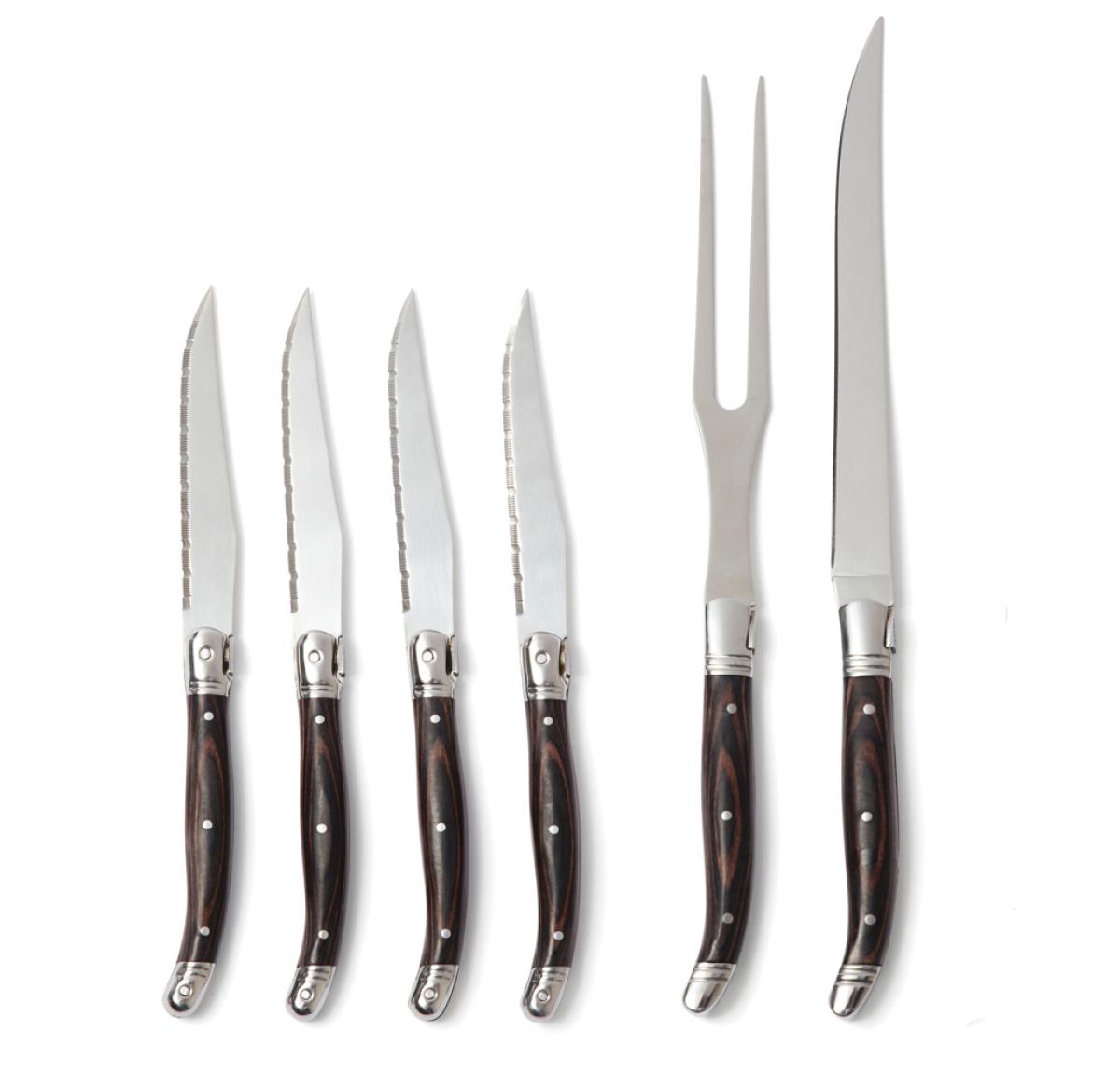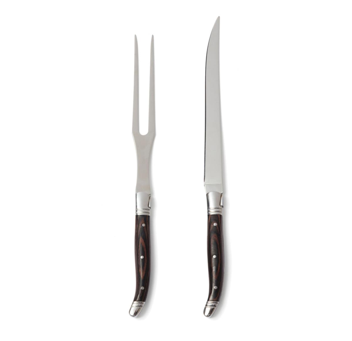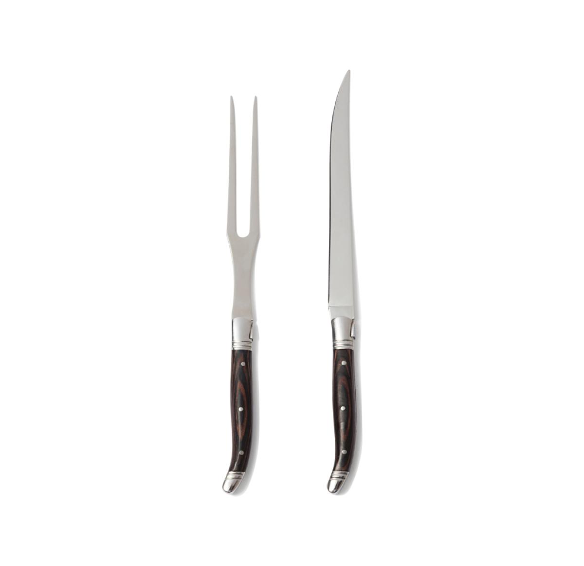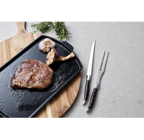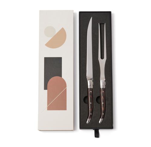 Trancher set with knife and fork in typical French-inspired bistro style. Black pakka wood handle and high-quality stainless steel blades. Packed in an exclusive gift box.