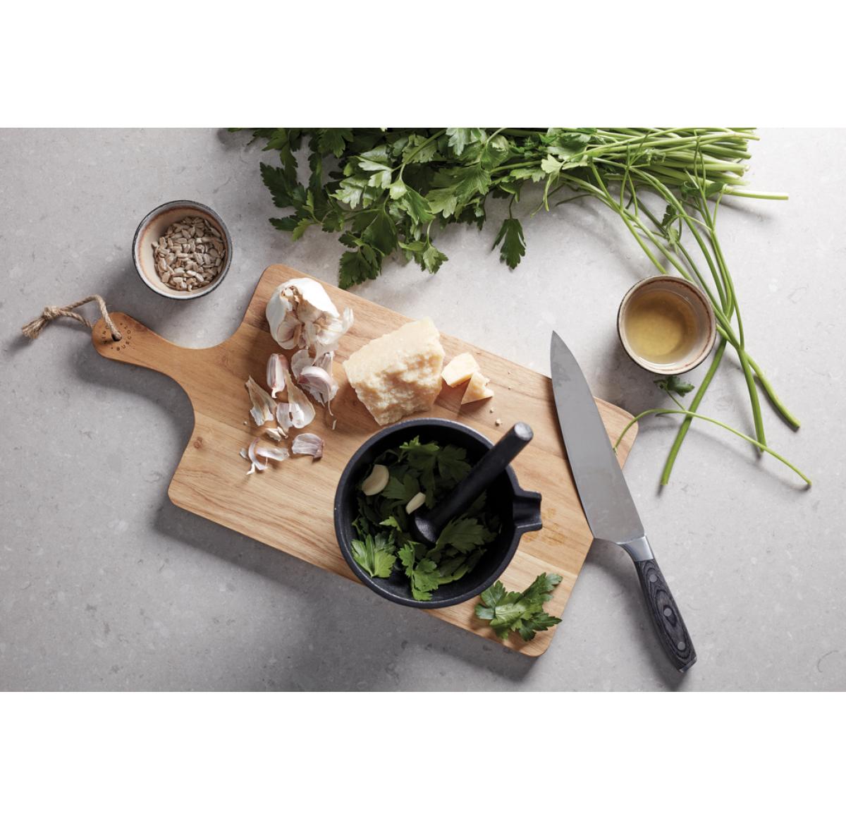 Stylish cutting/serving board that will look great in any kitchen. The spacious surface makes it easy to use it for both cutting and serving. The board is made of FSC-certified teak and has a beautiful golden to medium brown wood surface that darkens over time. The high oil content provides a powerful protection against decay, and keeps it in a fine condition for a long time.
