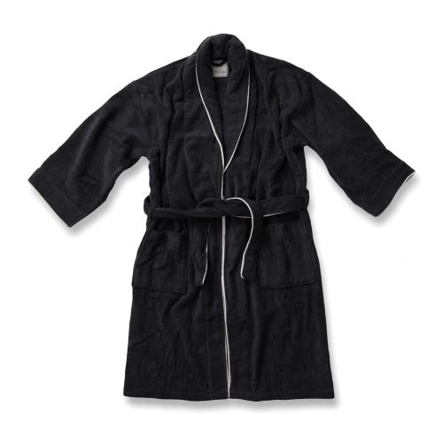 Luxurious robe in 100% cotton. The robe is a classic model with an extra wide collar and belt at the waist. It also has several nice details, such as enclosed seams and contrasting piping on the collar. Made of a long cotton fibre with untwisted threads. The result is an incredibly soft robe that you'll never want to take off.
