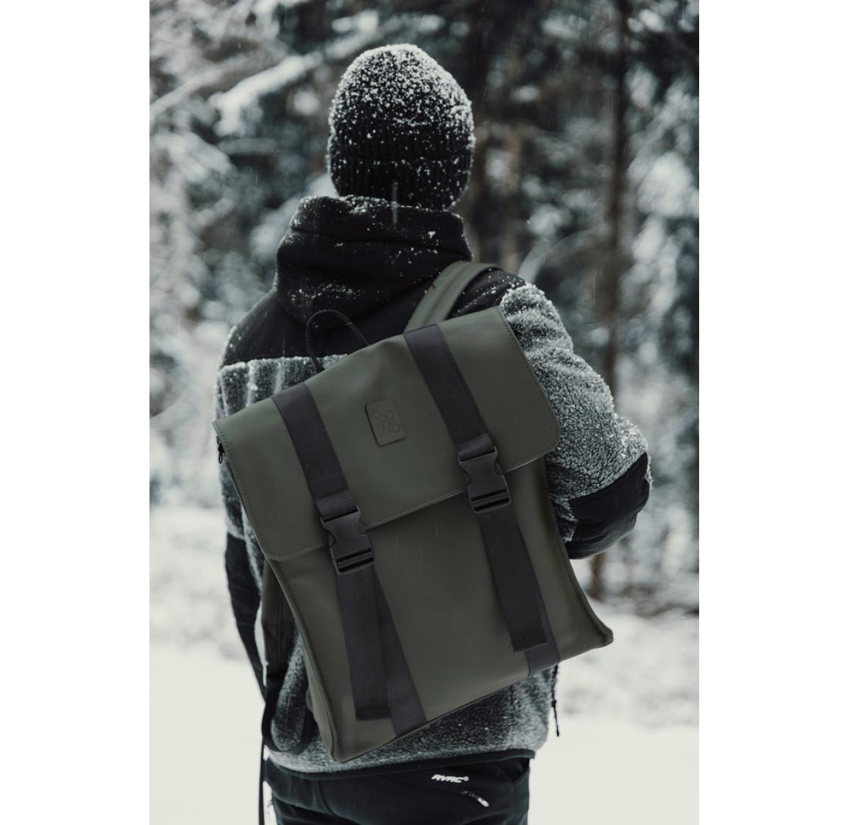Minimalistic and clean backpack that suits all occasions. The backpack is made of water-repellent nubuck vegan leather and has adjustable straps for optimal comfort. The backpack is also equipped with a zipper pocket on one side and a hidden pocket on the back, so you can easily turn your back without worrying about your valuables. Works equally well as a work bag and as a school bag.