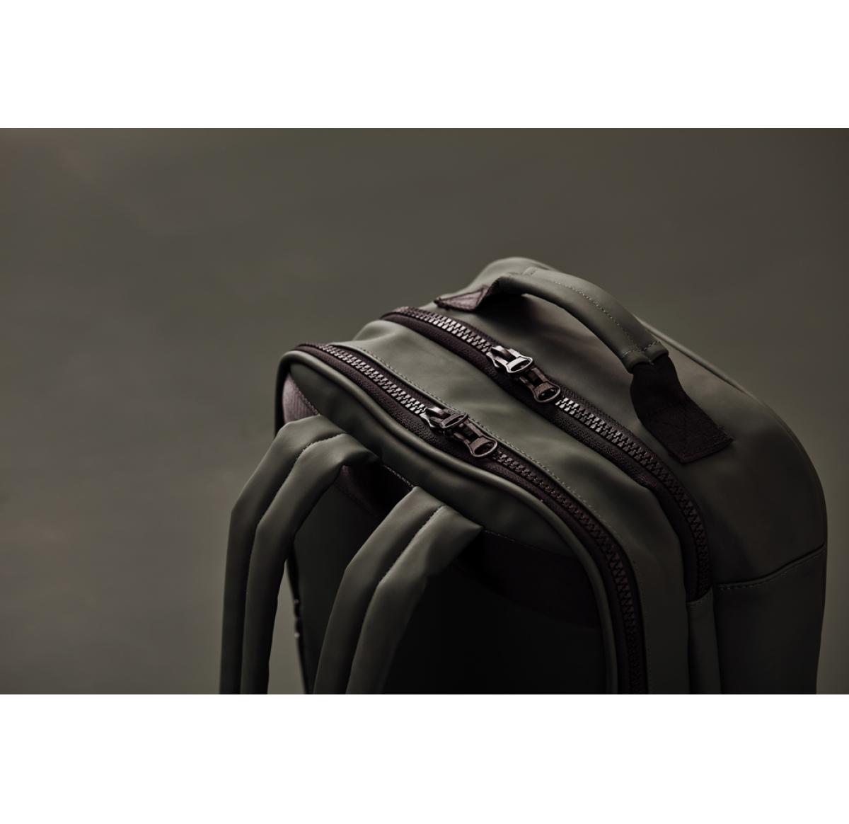 This backpack comes in a minimalistic and modern design and has handy organisational capacities, ensuring that you can fully utilise all of its space. There is a padded compartment for the computer and a hidden pocket on the back for safe storage of the valuables. The backpack's handy size, adjustable straps and well-planned compartments make it easy for you to carry everything that you need on the go. A perfect companion for short trips or nights over. Made of nubuck vegan leather which gives the bag its water-repellent properties.