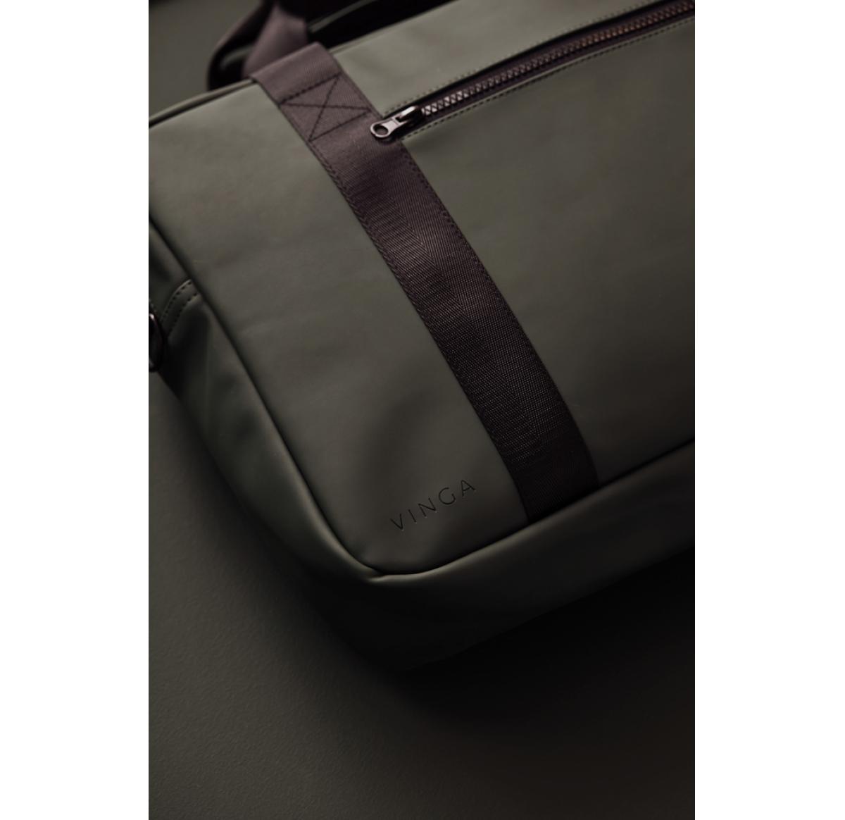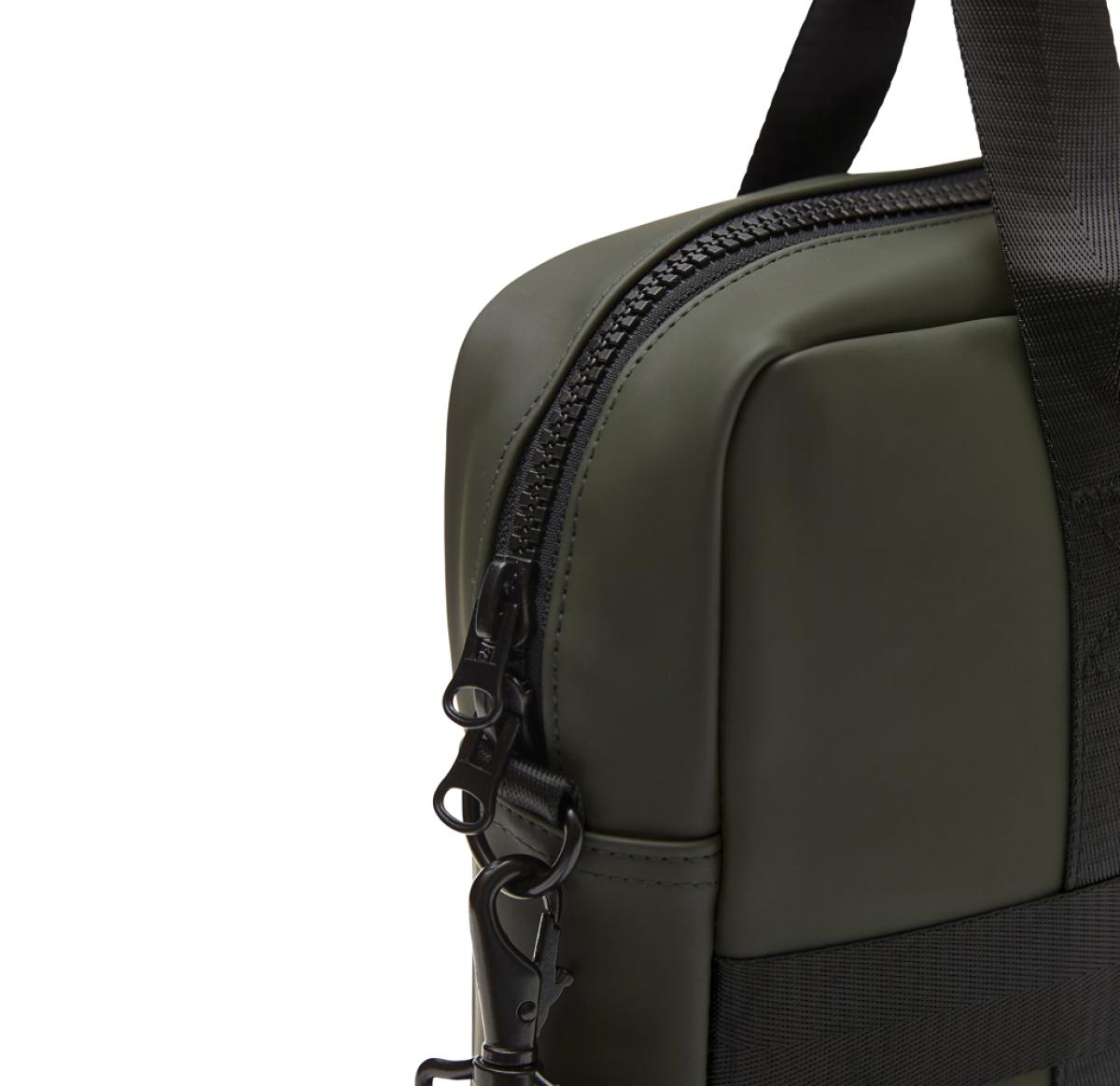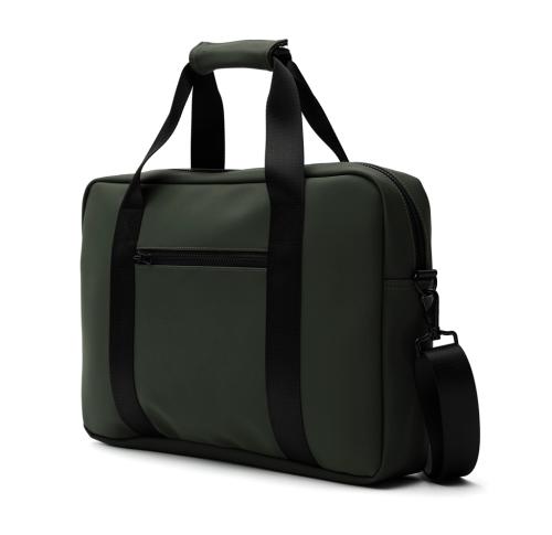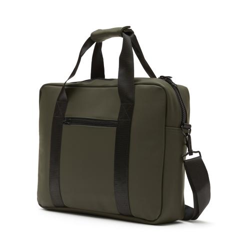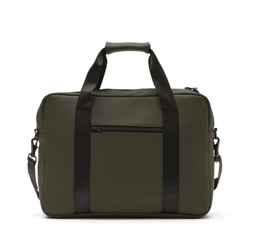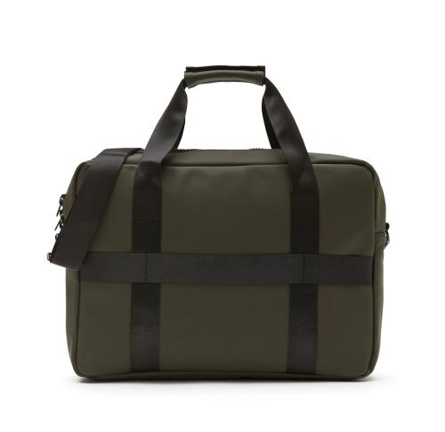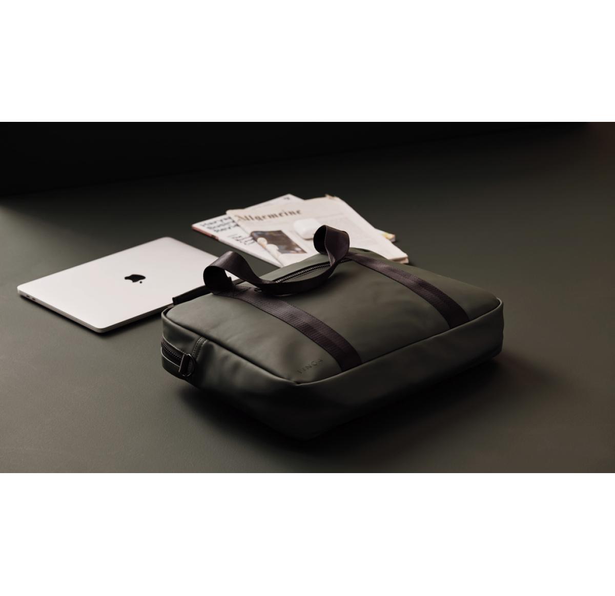 Modern and clean design computerbag. Function and form come together, besides the ordinary computer pocket this bag also has place for pens, documents and other belongings. The bag is produced in a water repellent material, with both shoulder strap and carry handles. It also includes an attached band on the reverse, so it fits your trolley when travelling.