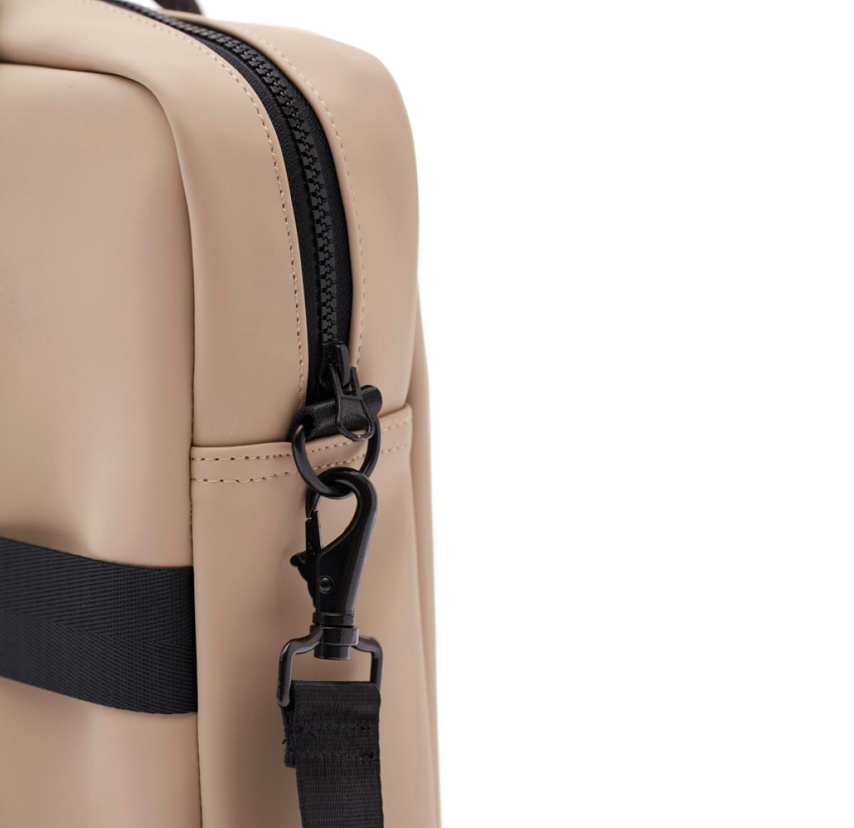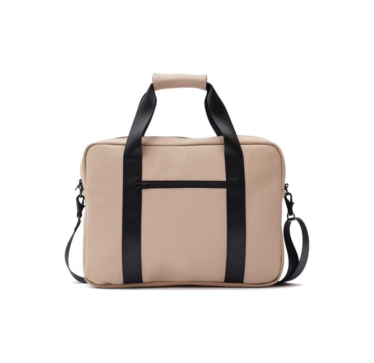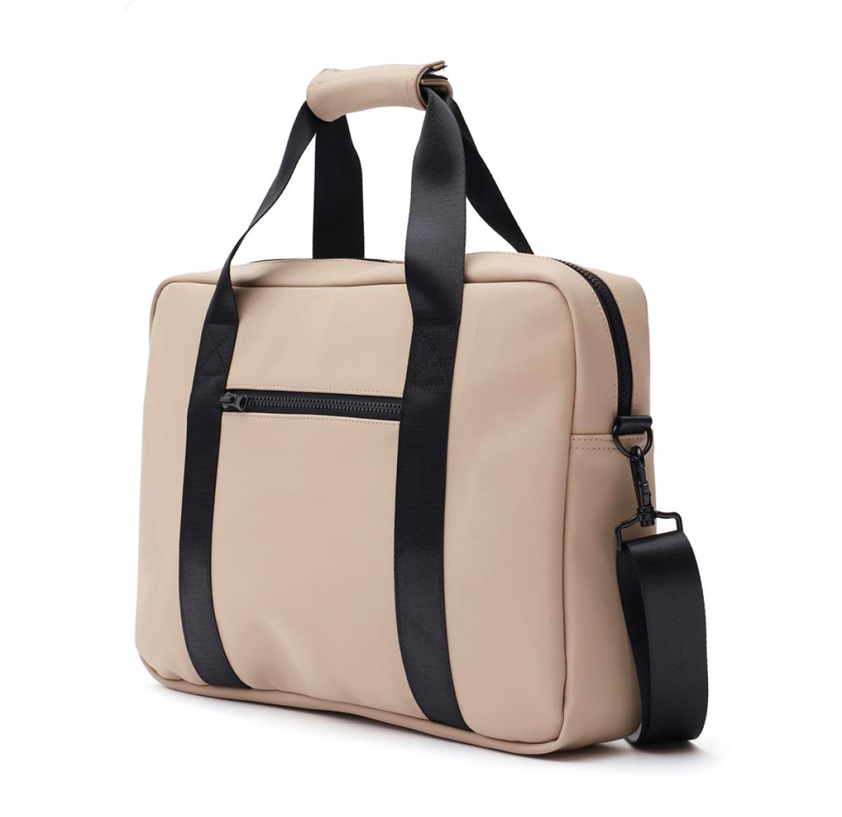 Modern and clean design computerbag. Function and form come together, besides the ordinary computer pocket this bag also has place for pens, documents and other belongings. The bag is produced in a water repellent material, with both shoulder strap and carry handles. It also includes an attached band on the reverse, so it fits your trolley when travelling.