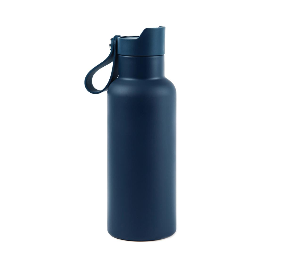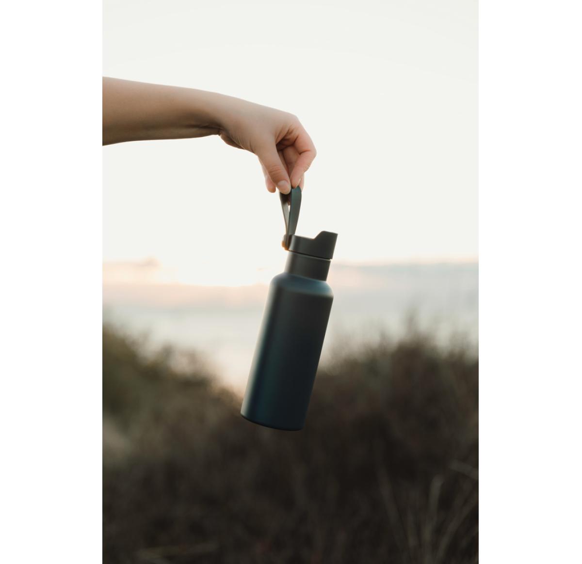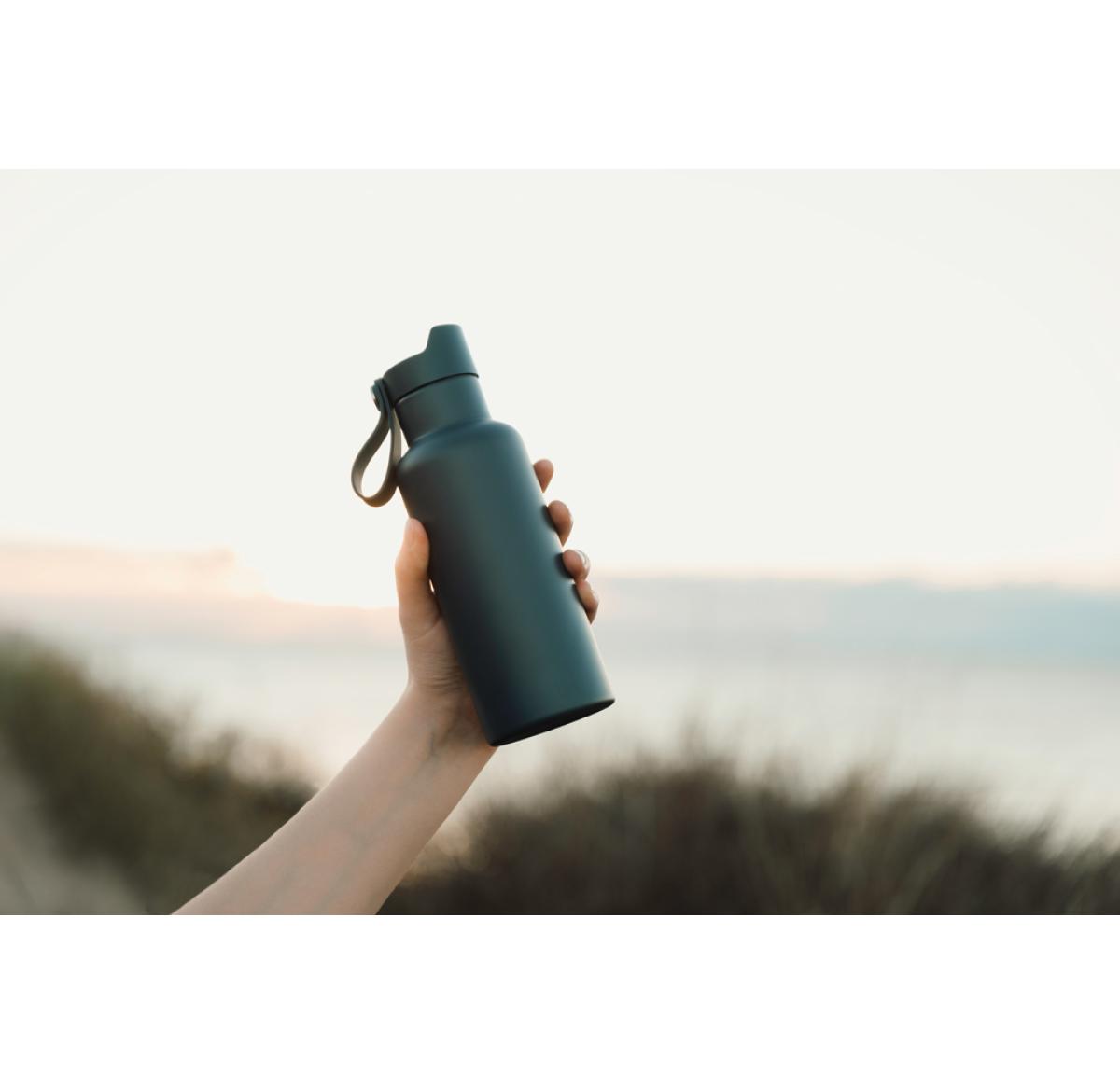 Practical and stylish water bottle with a tough, double wall. Vacuum sealed to keep drinks hot or cold for up to 6 hours. Enjoy your favourite cold drink while you're out and about or bring a warming cup of tea or coffee on your morning commute. Push-mug function. 500ml.