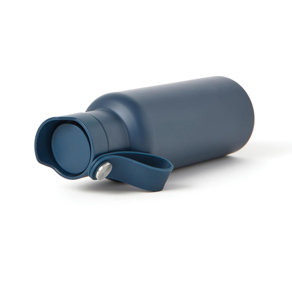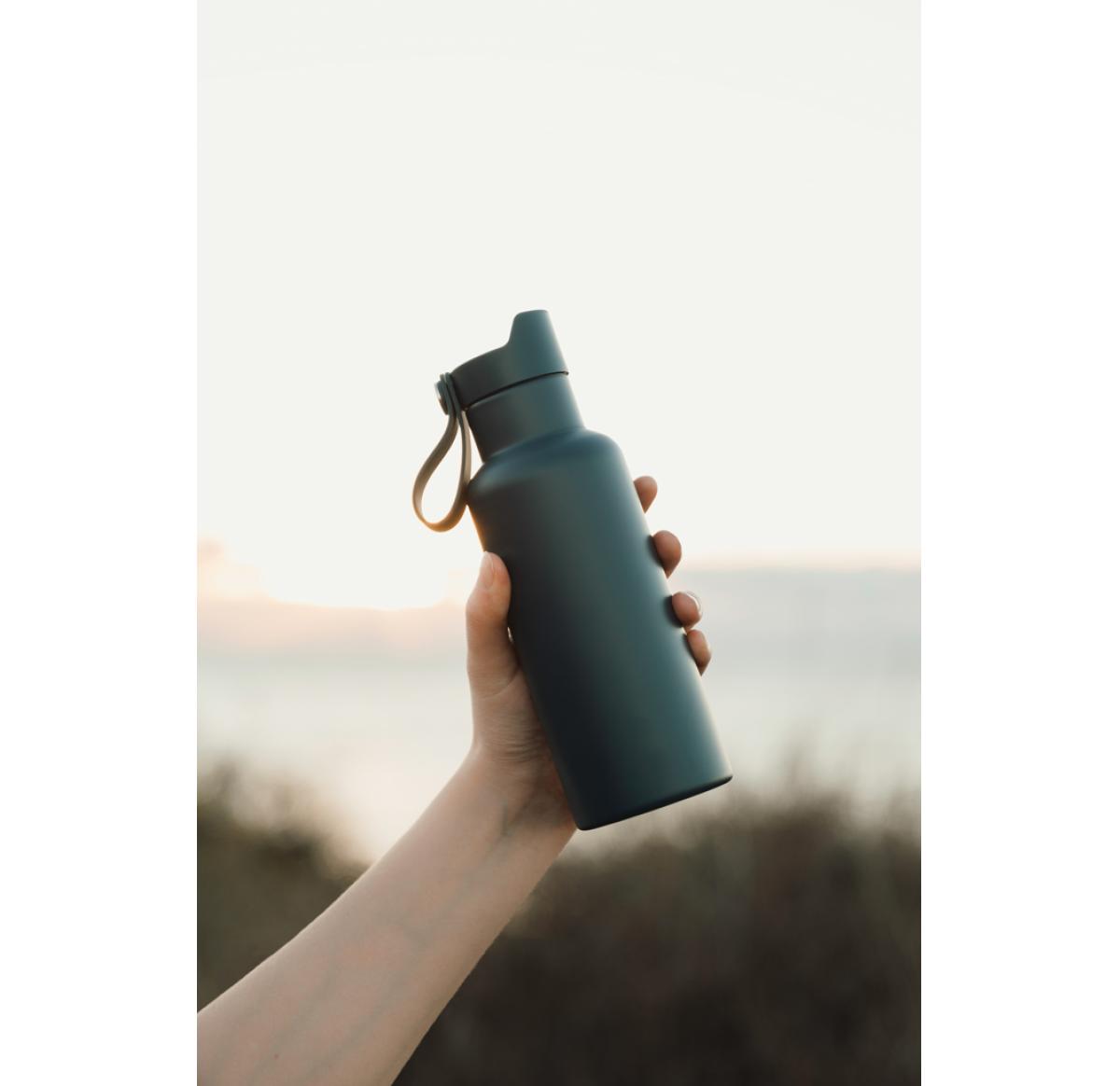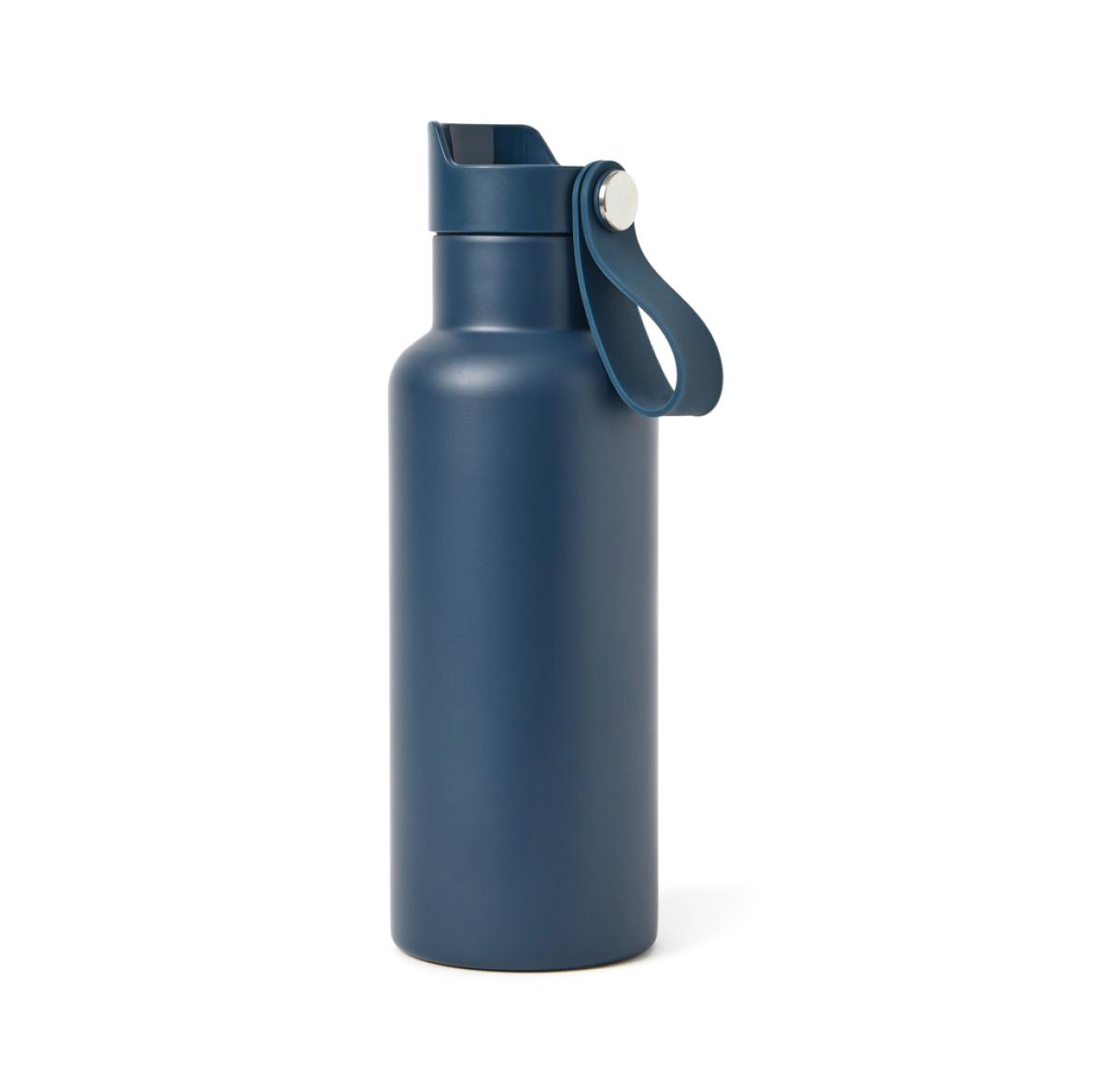 Practical and stylish water bottle with a tough, double wall. Vacuum sealed to keep drinks hot or cold for up to 6 hours. Enjoy your favourite cold drink while you're out and about or bring a warming cup of tea or coffee on your morning commute. Push-mug function. 500ml.