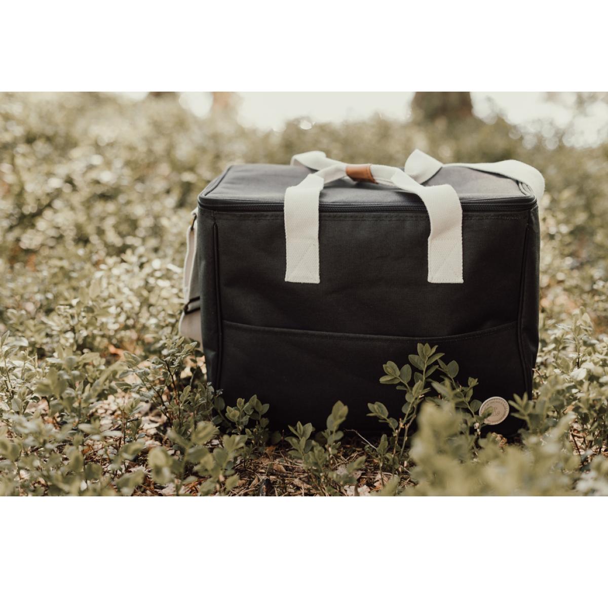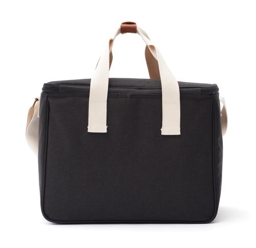 This spacious cooler basket with a lid means the end to the old boring plastic versions. The cooler bag is in a melange fabric accompanied with PU details which makes it as fancy as a normal bag. Produced in 50% recycled polyester from recycled PET bottles. The PEVA lining keeps cool for a long period of time, and is also easy to clean. Both with shoulder strap and handles.