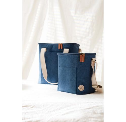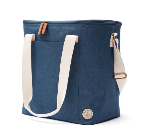 The weekend getaway will definetly get better with this trendy cooler bag, it is also practical and simple to clean. The cooler bag is in a melange fabric accompanied with PU details which makes it as fancy as a normal bag. Produced in 50% recycled polyester from recycled PET bottles. On the front of the bag is a pocket for belongings. You can either carry it in its handles or over your shoulder.