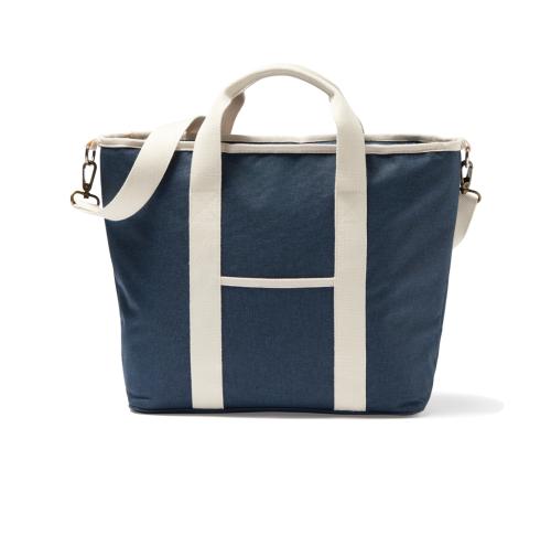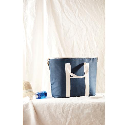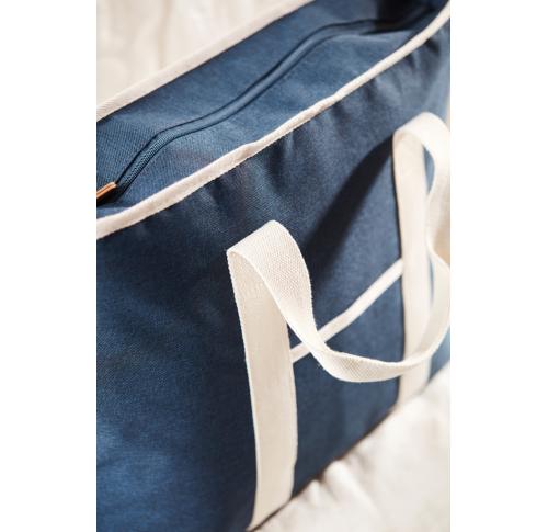 Cooler bag that is mottled tone by tone with details in imitation leather and cotton so that it is as beautiful as an ordinary bag and you can picnic in style. Made from 50% recycled material from PET bottles. There is also a small compartment on the outside of the cooler bag, providing space for other items as well. The thick PEVA padding ensures that the cold is retained for a long time. It is also easy to clean and dry after use. With an adjustable shoulder strap and double handle, you have different ways to carry the cooler bag.