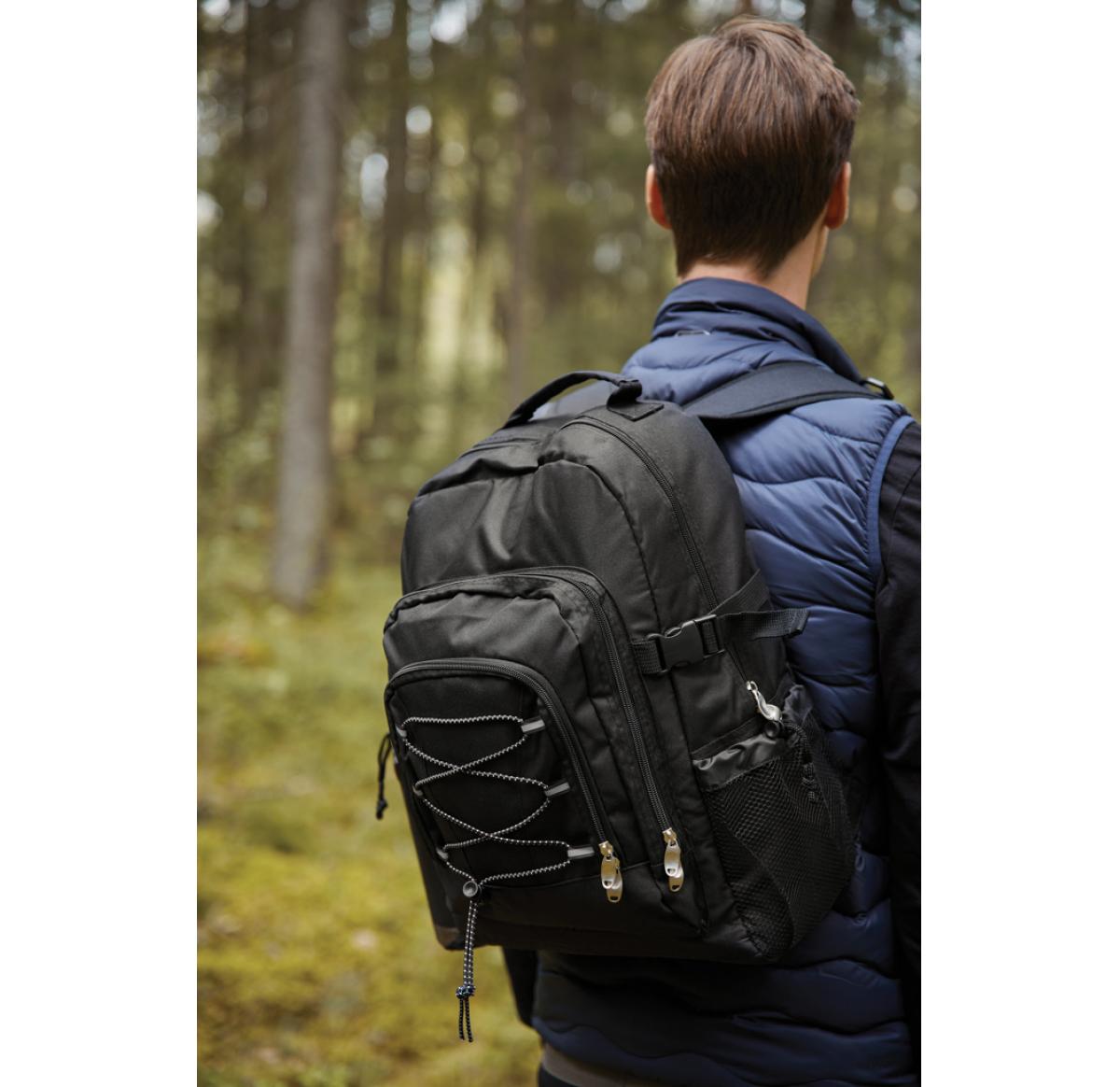 Spacious backpack with cooling function and many compartments. 600D polyester.