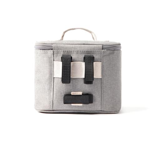 This modern, stylish cooler bag is perfect for your excursions. It is made of 50% recycled material from PET bottles. The inside can easily be wiped out and thick PEVA padding keeps the bag cold for a long time. With a touch fastener on the back of the bag, you can secure it to your bicycle handlebars. The bag also has an adjustable cover, ensuring optimal cold insulation every time.