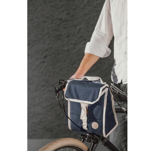This modern, stylish cooler bag is perfect for your excursions. It is made of 50% recycled material from PET bottles. The inside can easily be wiped out and thick PEVA padding keeps the bag cold for a long time. With a touch fastener on the back of the bag, you can secure it to your bicycle handlebars. The bag also has an adjustable cover, ensuring optimal cold insulation every time.