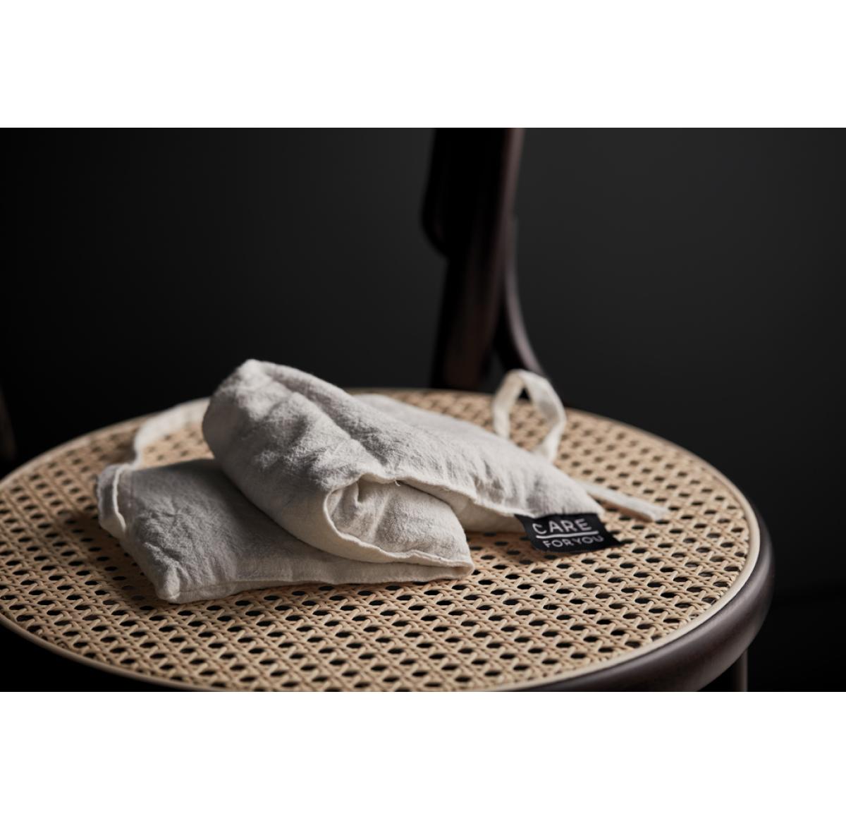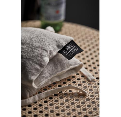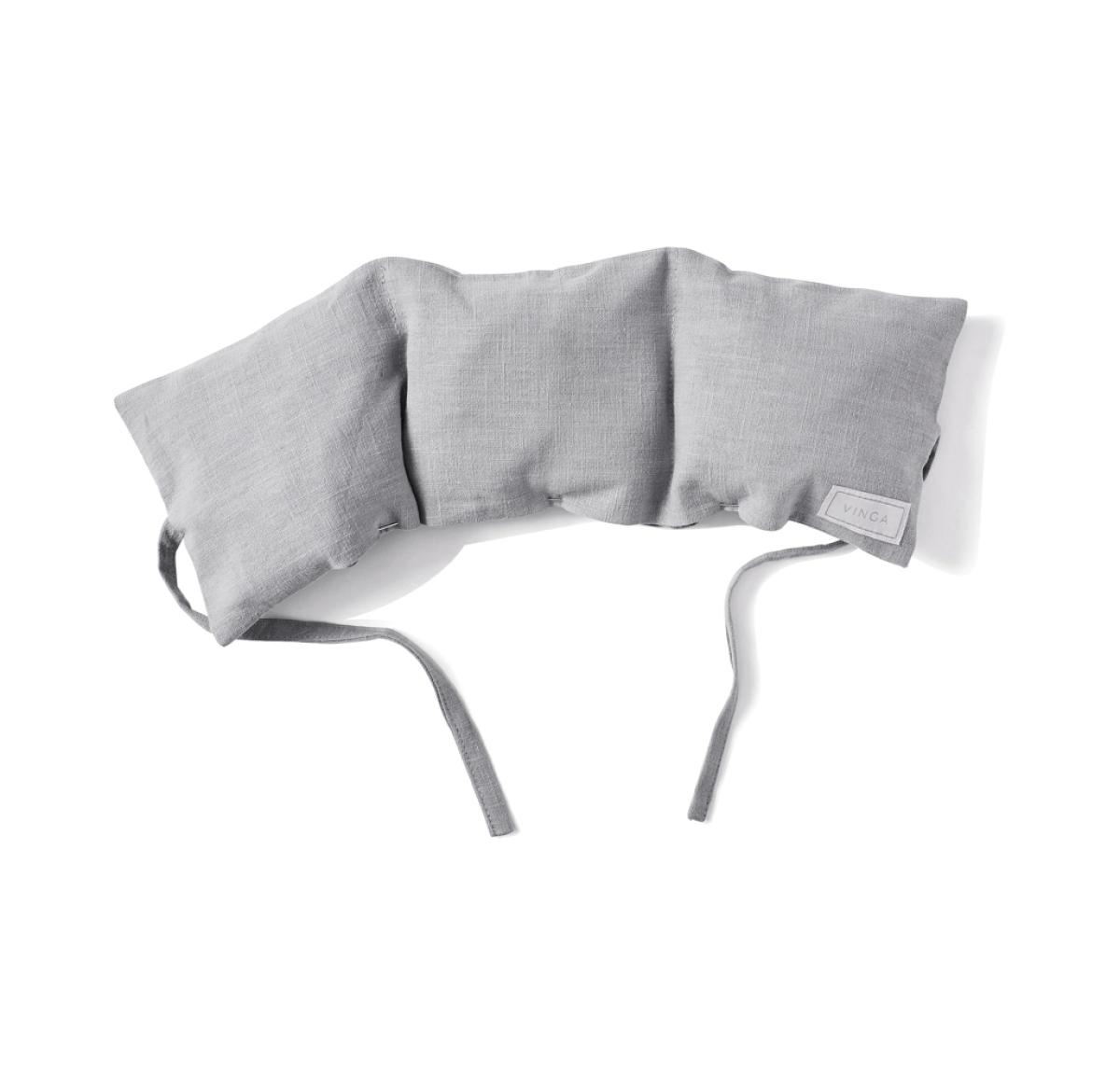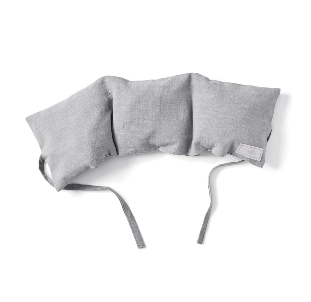 Wheat pillow for warming or cooling, sewn into three channels for even heat distribution. Heated easily in the microwave or cooled in the freezer, it comes with a practical band that makes it easier to keep in place, against your neck, for example, or wherever you have pain.