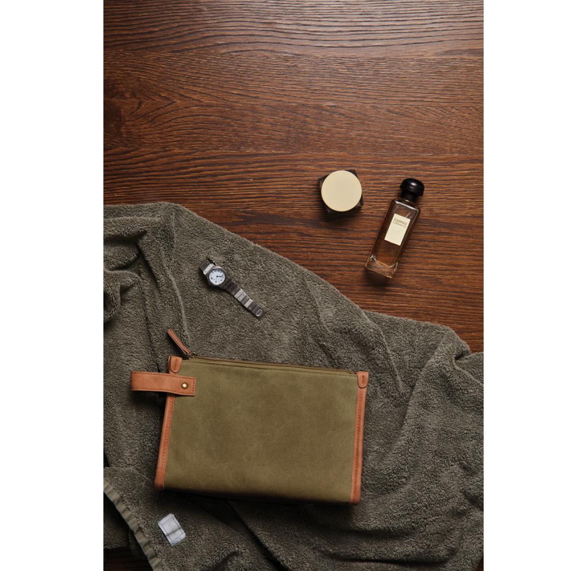 Smart and practical wash bag made of 40 % recycled polyester and 60 % recycled cotton. A handy range of interior organisational compartments help to order your products neatly, perfect for travelling. The sleek and versatile design can easily fit in your main bag. A simple and effective solution for all your travel needs.