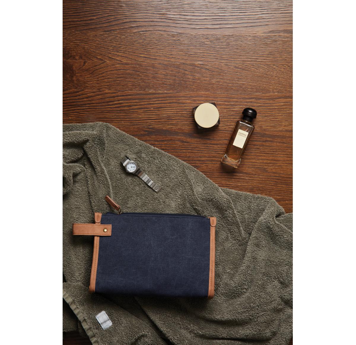 Smart and practical wash bag made of 40 % recycled polyester and 60 % recycled cotton. A handy range of interior organisational compartments help to order your products neatly, perfect for travelling. The sleek and versatile design can easily fit in your main bag. A simple and effective solution for all your travel needs.