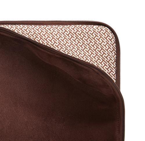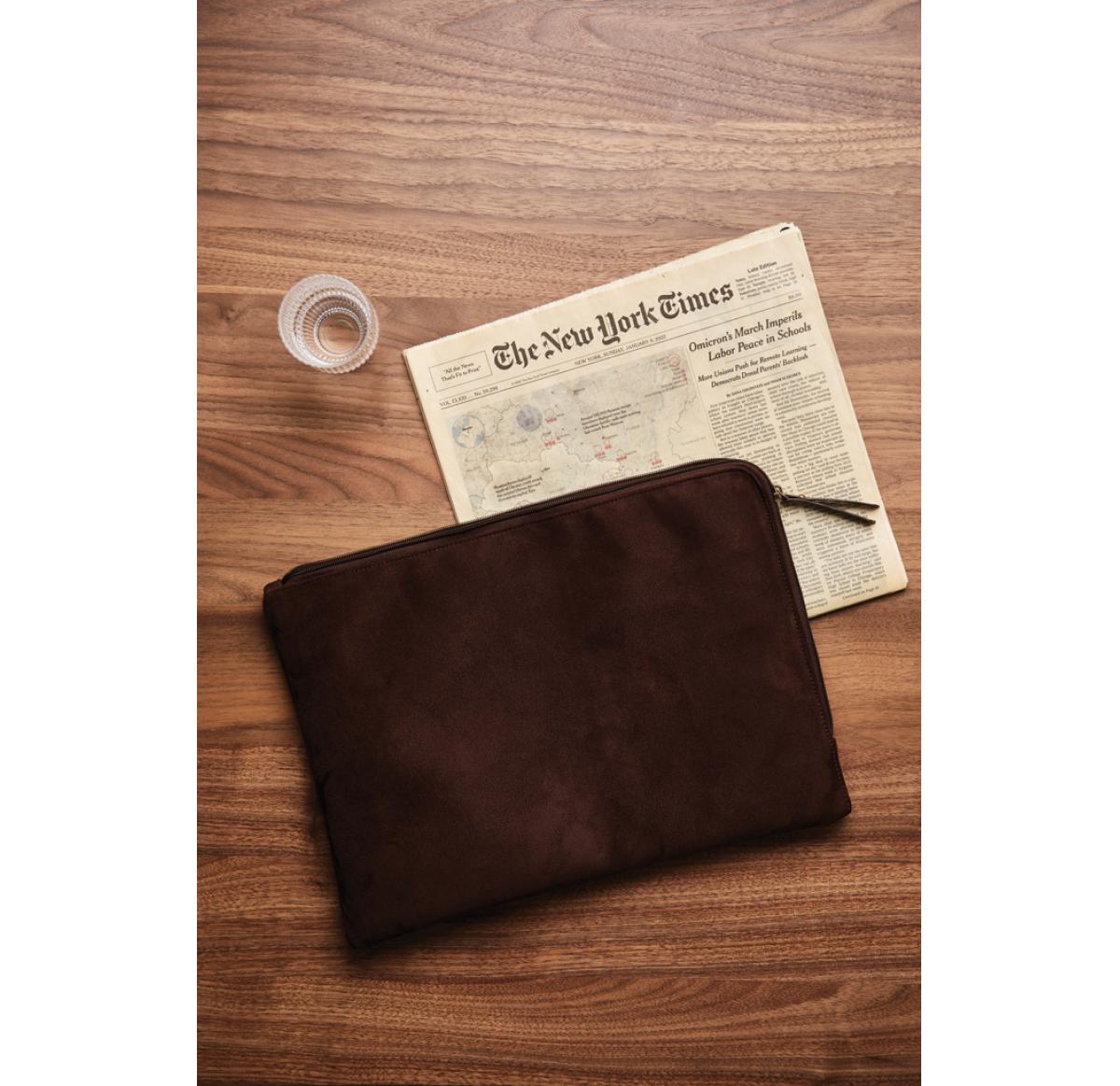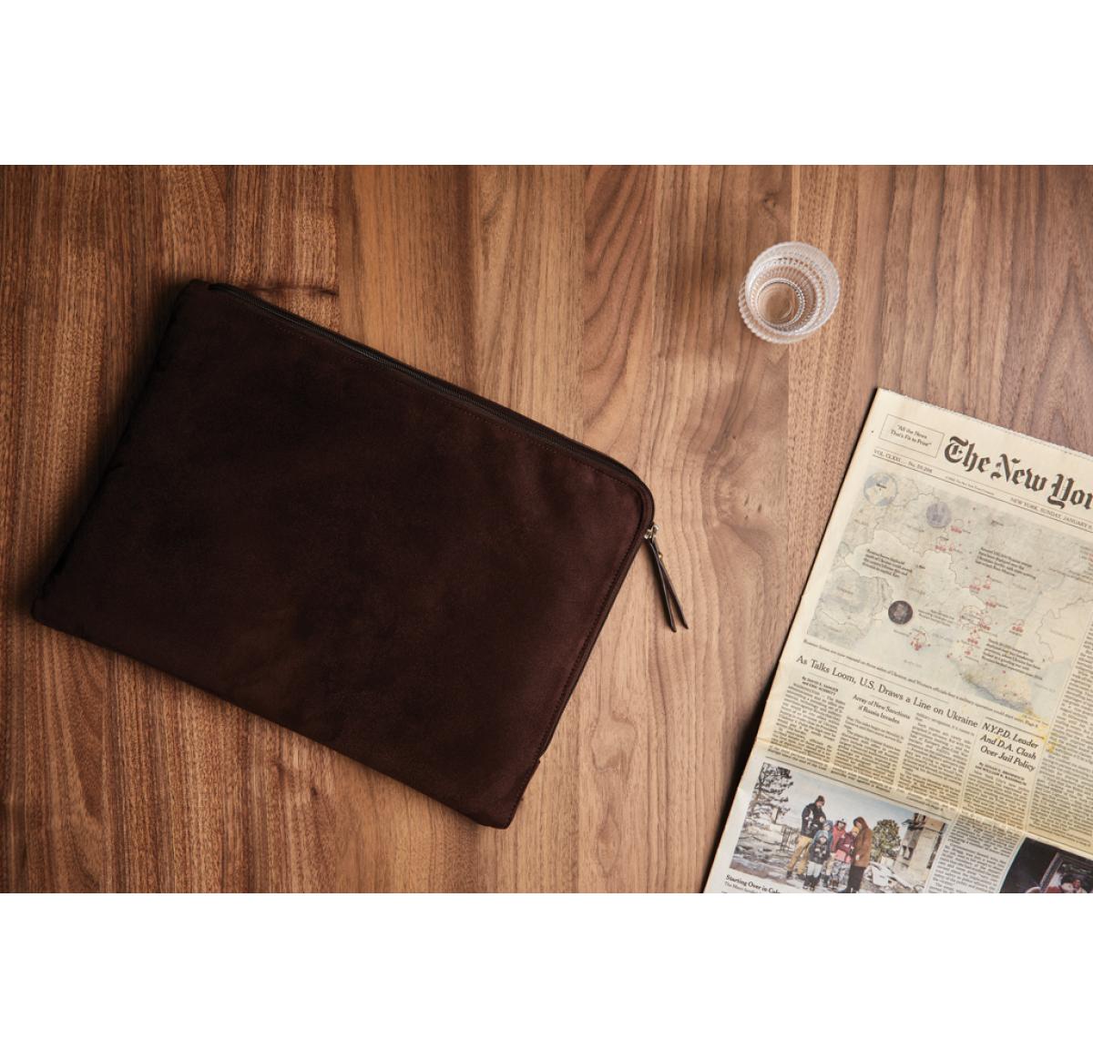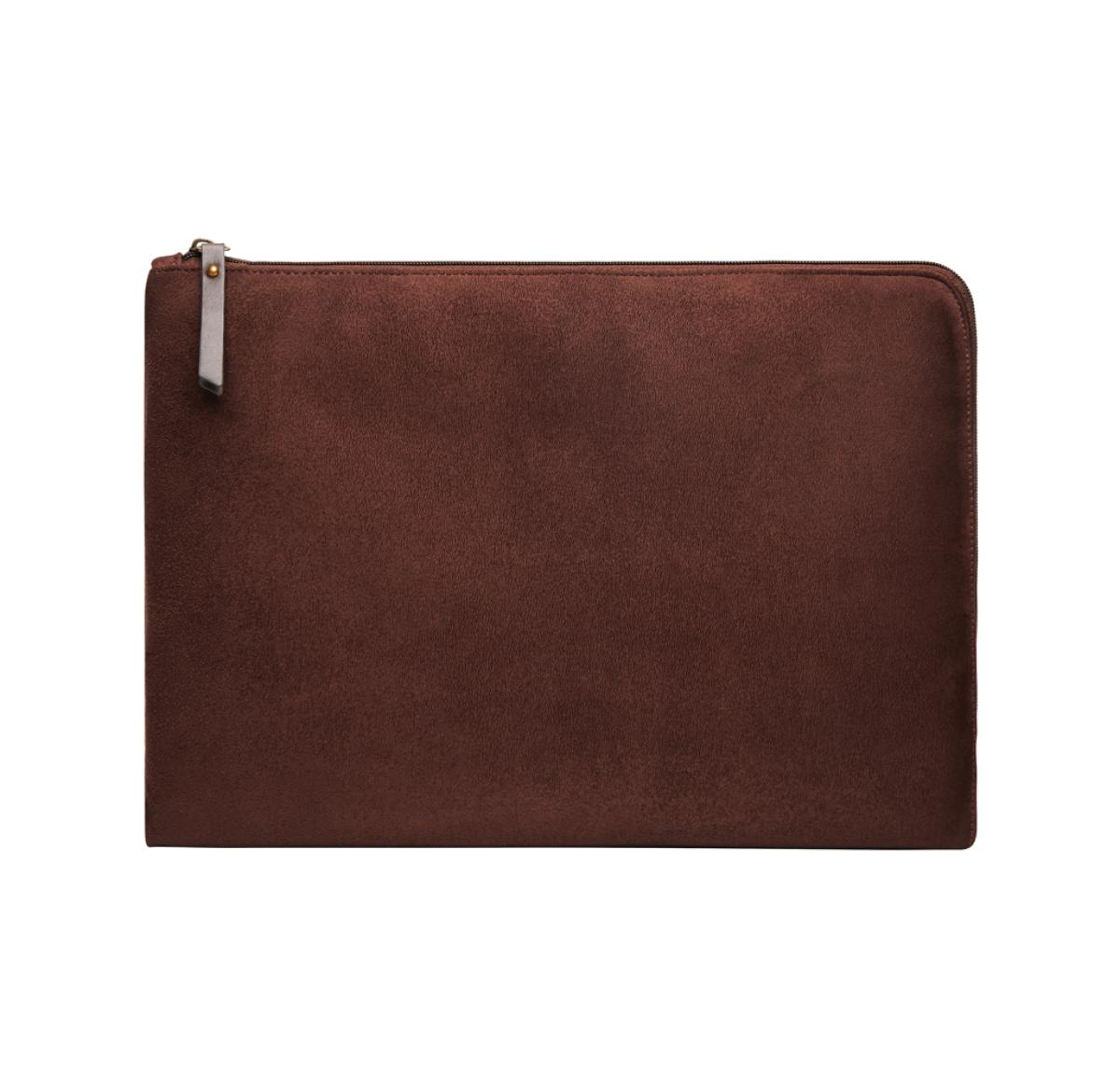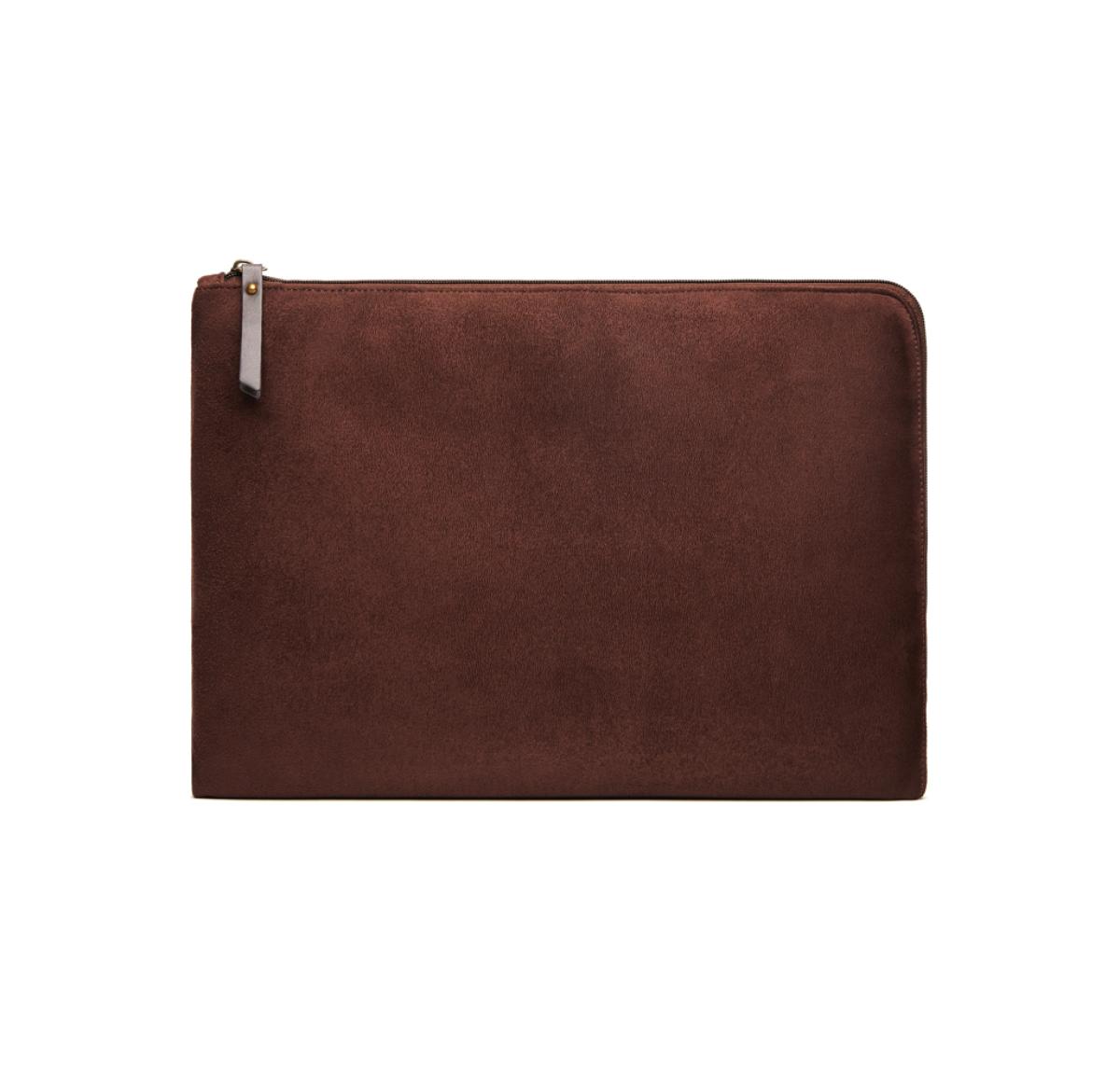 A smart padded computer case for a 16" laptop. This versatile case is ideal for carrying your computer safely and stylishly no matter the occasion. The high quality design includes a smooth fit for ease of use, supple vegan leather and subtle metal details with a brass finish. The slim and elegant design fits easily into your bag or suitcase. Business travel has never been more stylish!